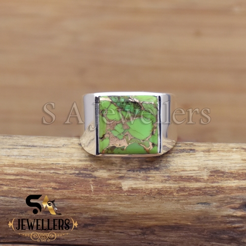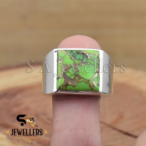 Be the first to review “Green Copper Turquoise Ring, 925 Sterling Silver, Men’s Ring”