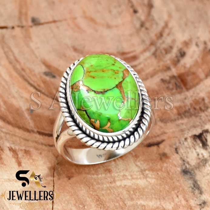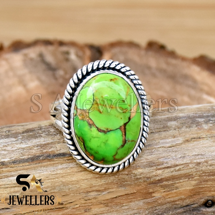 Green Copper Turquoise Ring, 925 Sterling Silver Ring, Designer Ring