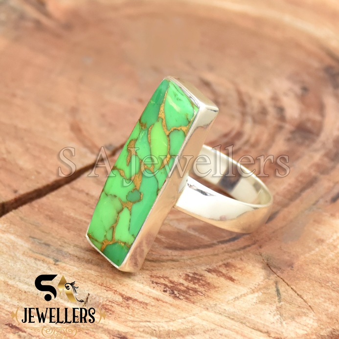 Green Copper Turquoise Ring, 925 Sterling Silver Ring, Handmade Ring,