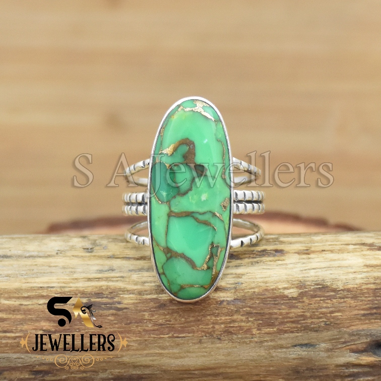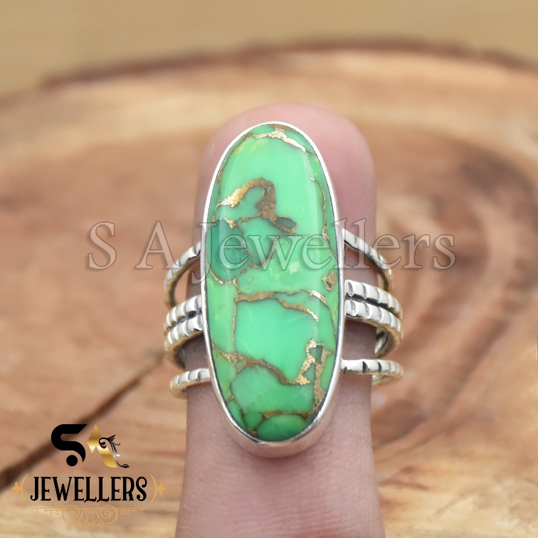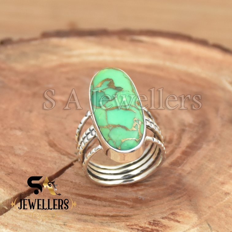 Green Copper Turquoise Ring, Gemstone Ring, 925 Sterling Silver Ring,