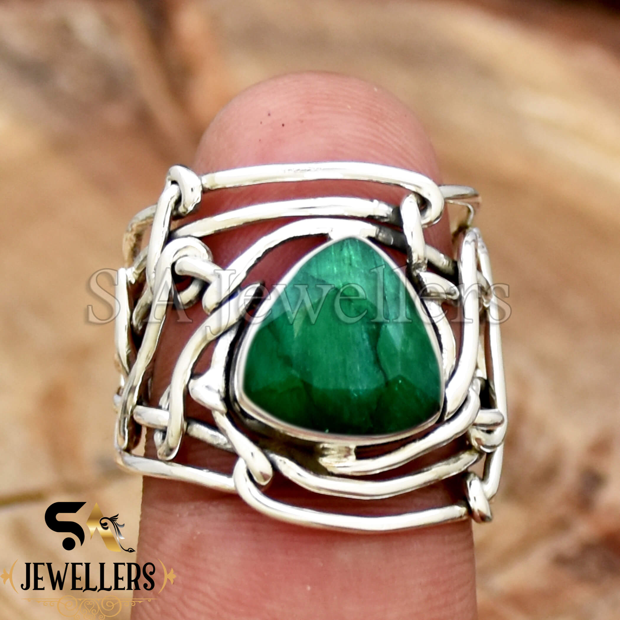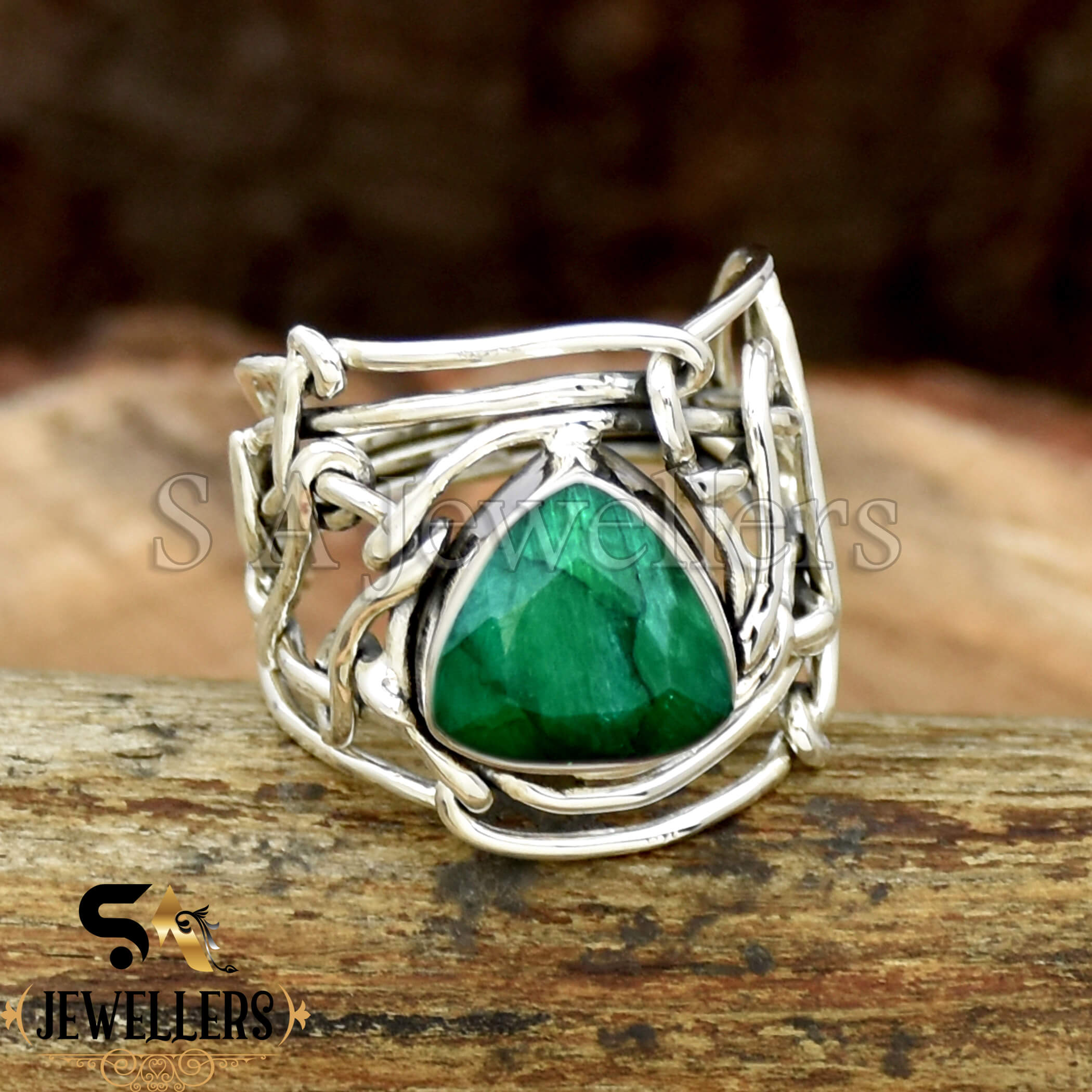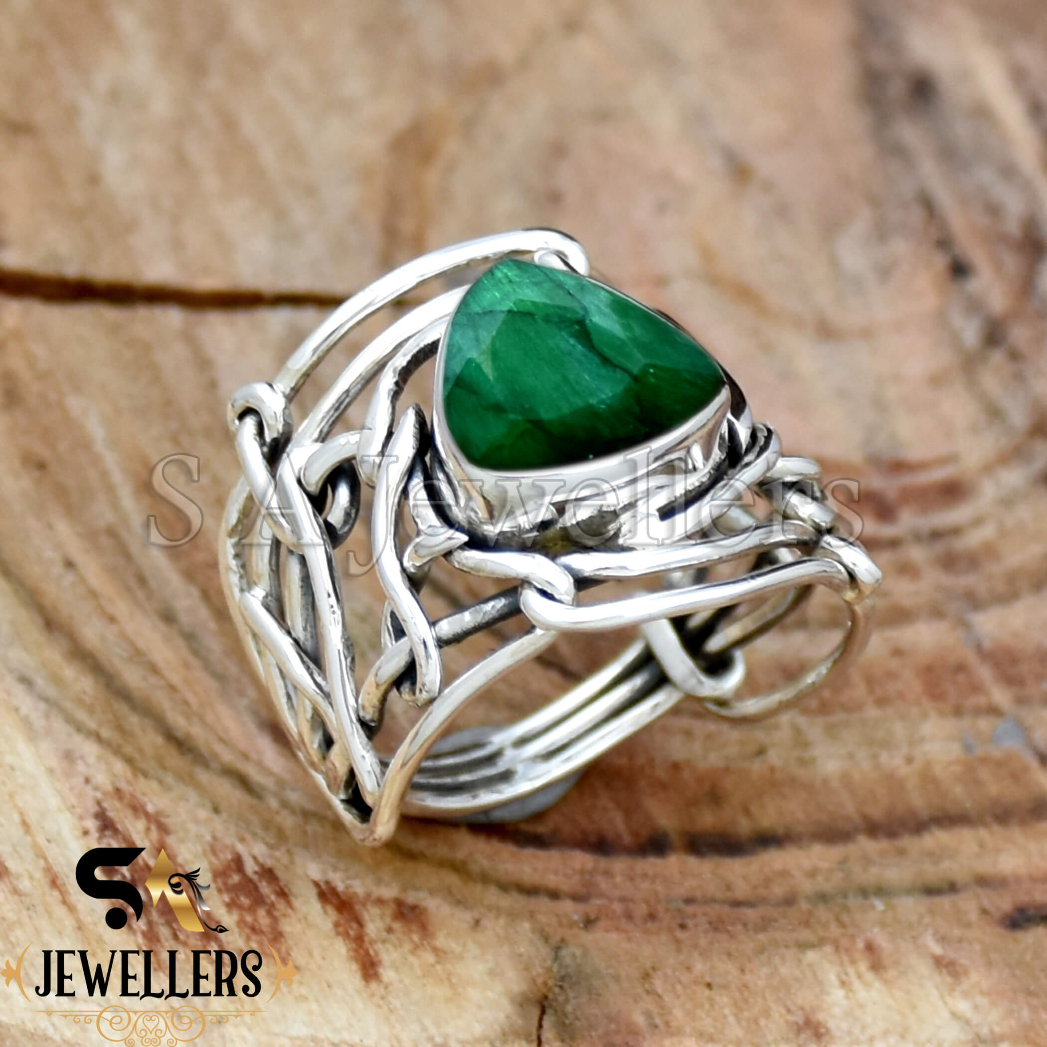 Indian Emerald Ring, 925 Sterling Silver Ring, Emerald Ring, Wire Wrap Ring, Women’s Ring, Gift For Her