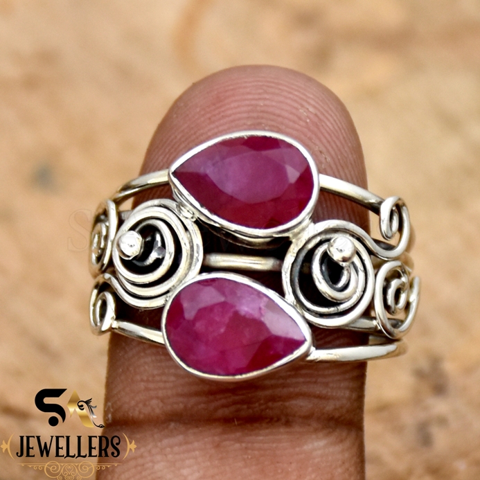 India Ruby Ring, 925 Sterling Silver Ring, Handmade Wire Ring, Gift For Her