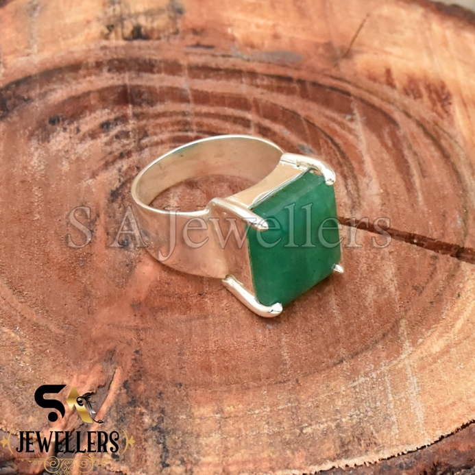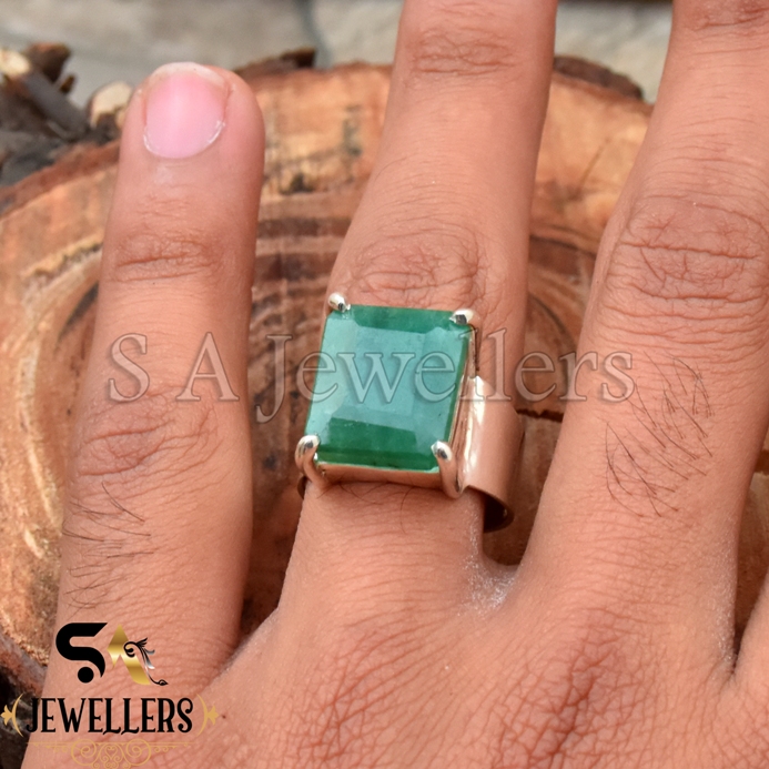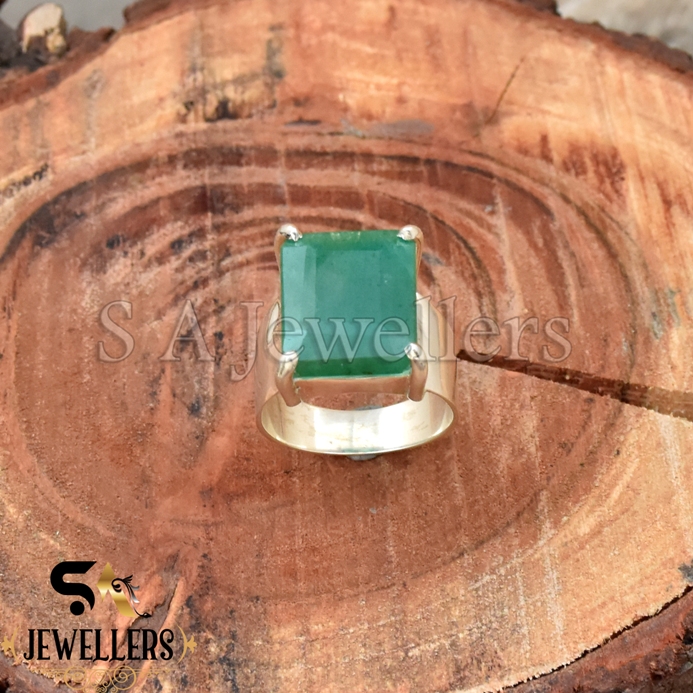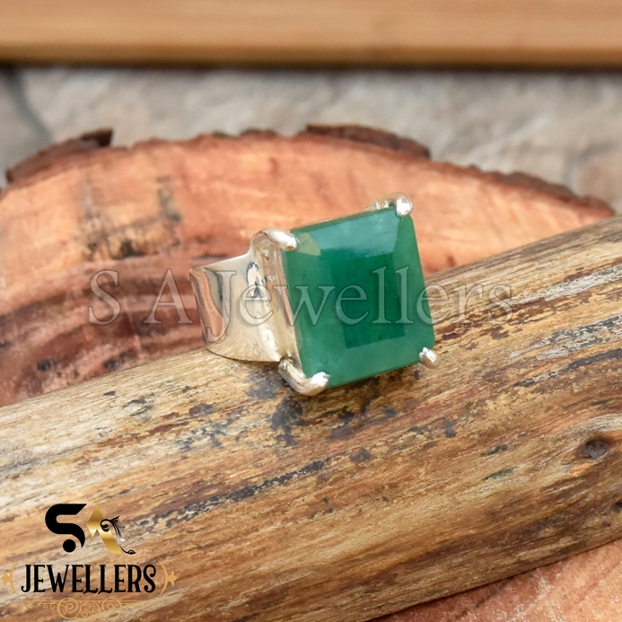 Indian Emerald Ring, 925 Sterling Silver Ring, Faceted Ring, Prong Ring