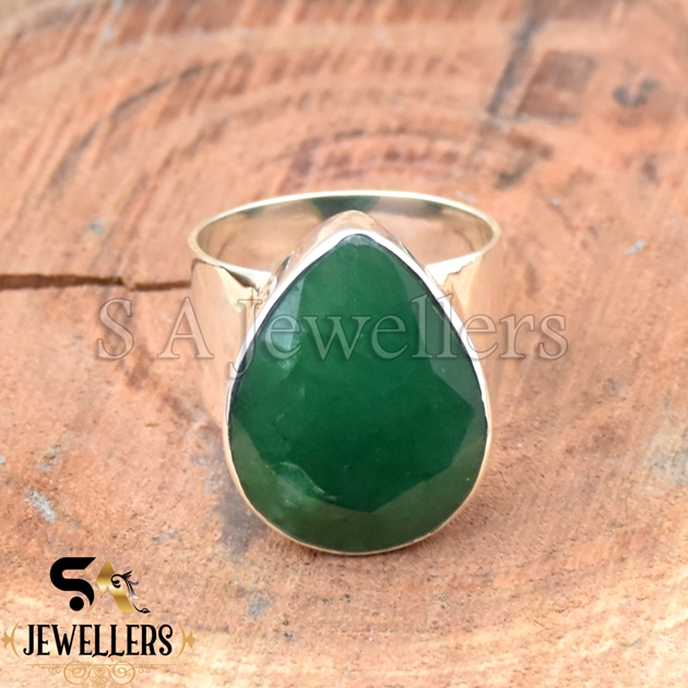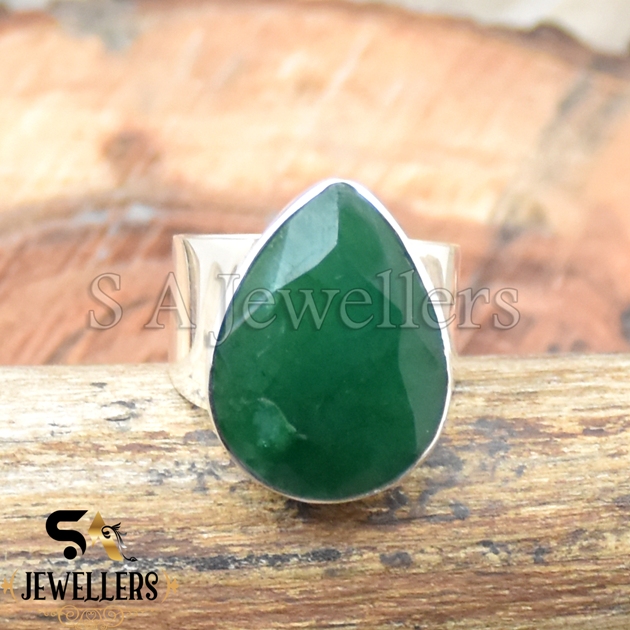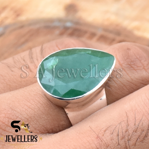 Indian Emerald Ring, 925 Sterling Silver Ring, Handmade Bezel Ring