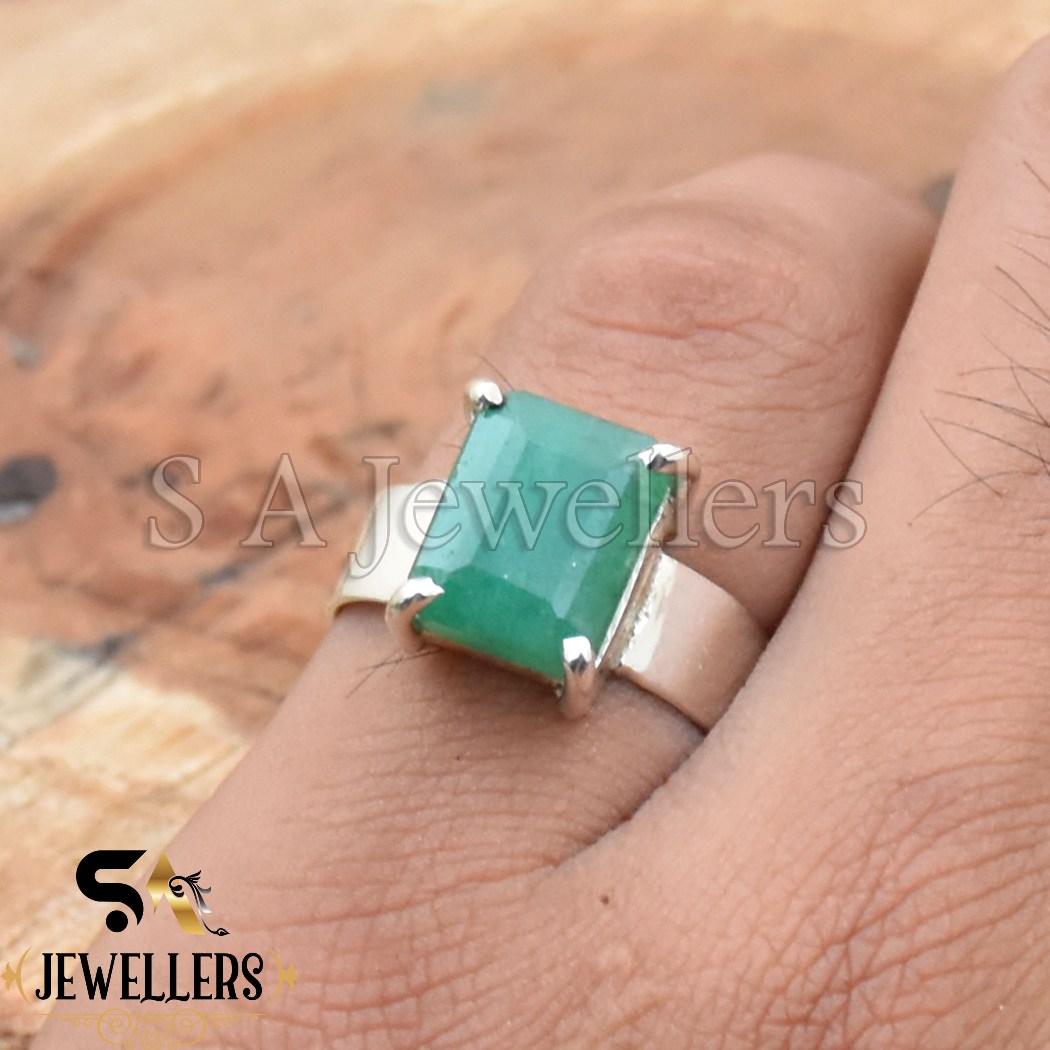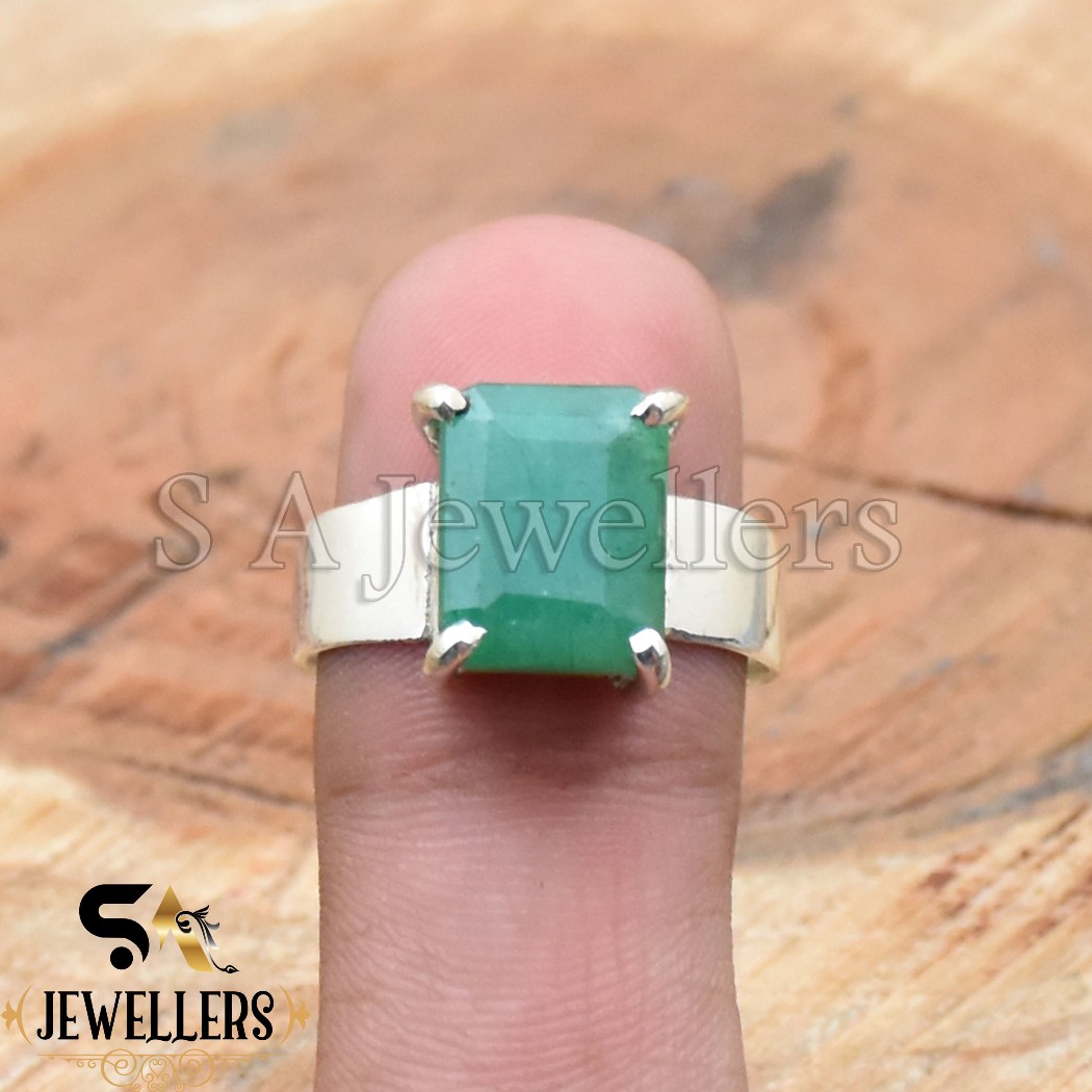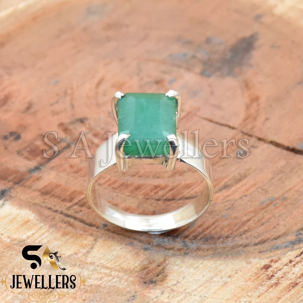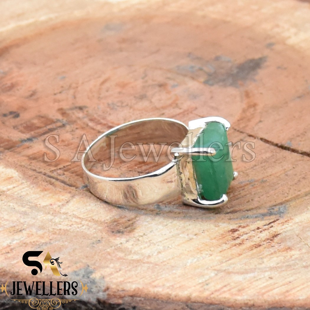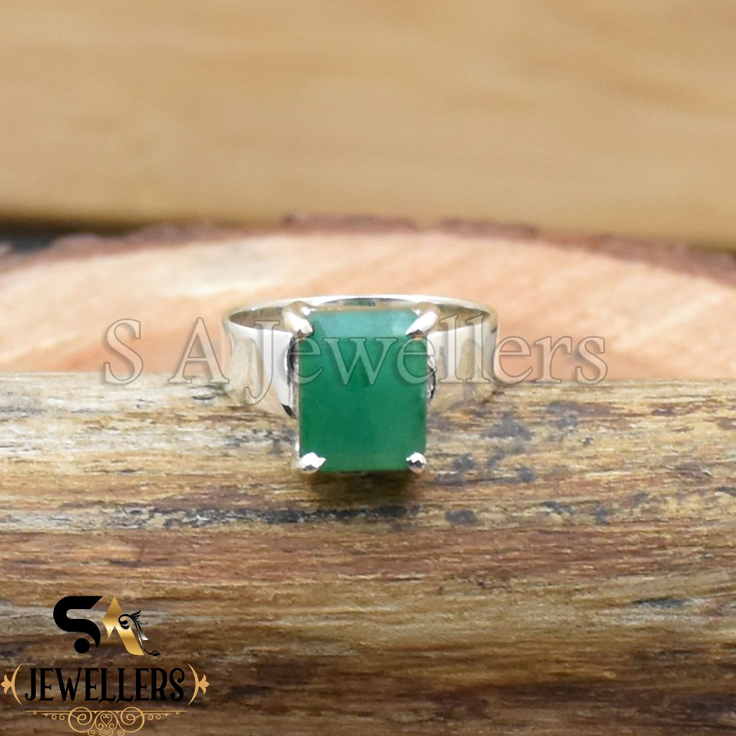 Indian Emerald Ring, 925 Sterling Silver Ring, Prong Ring, Handmade Ring