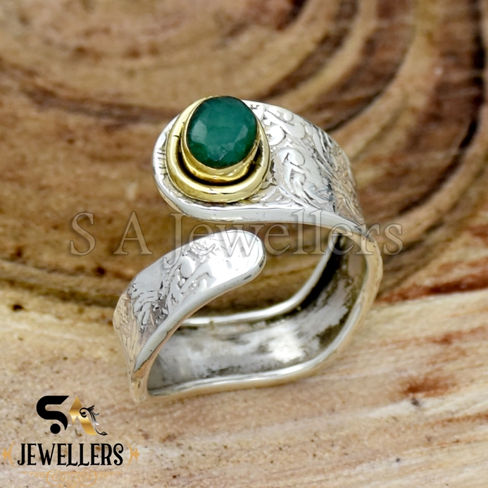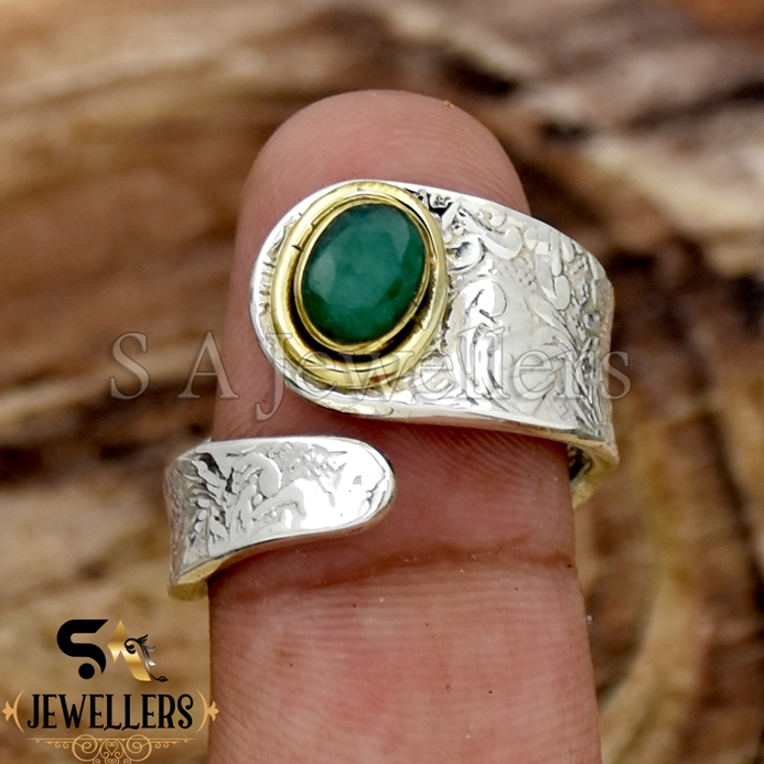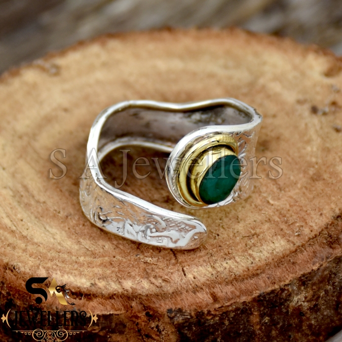 Indian Emerald Silver Ring, Two Tone Ring, 925 Sterling Silver Ring