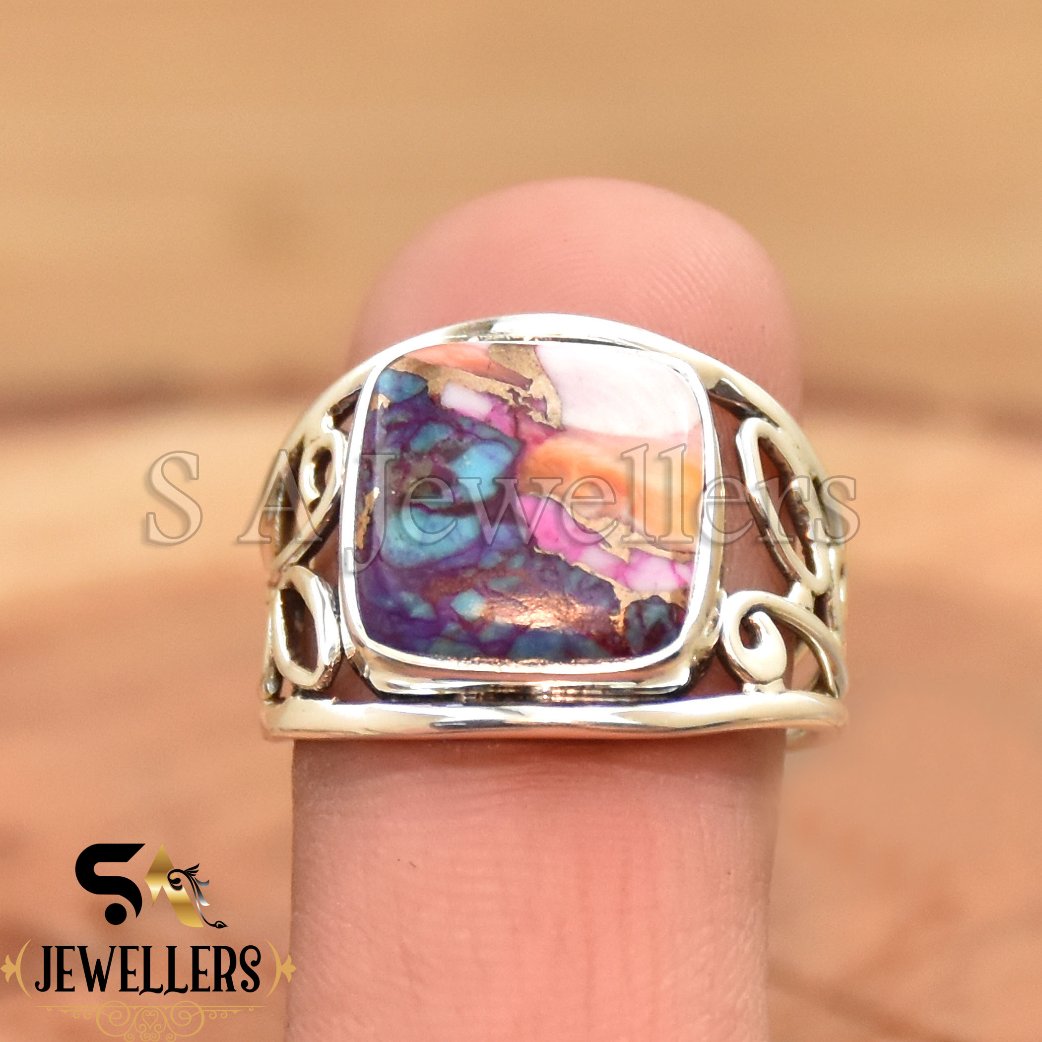 Main Stone : Pink Oyster Copper Turquoise
