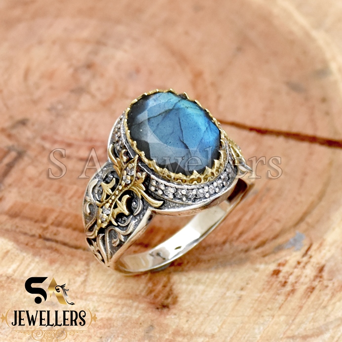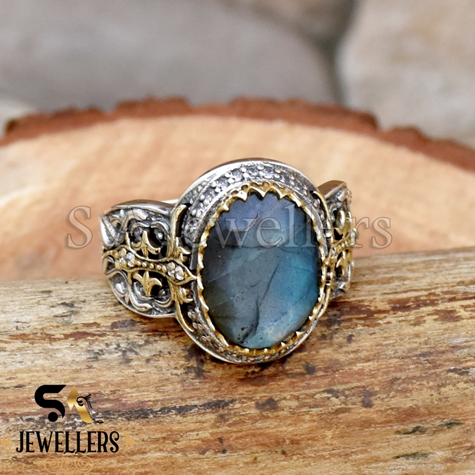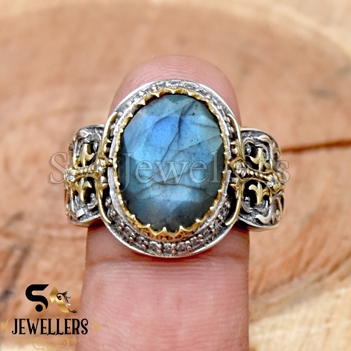 Be the first to review “Labradorite With White Zircon Ring, 925 Sterling Silver Ring, Tow Tone Ring”