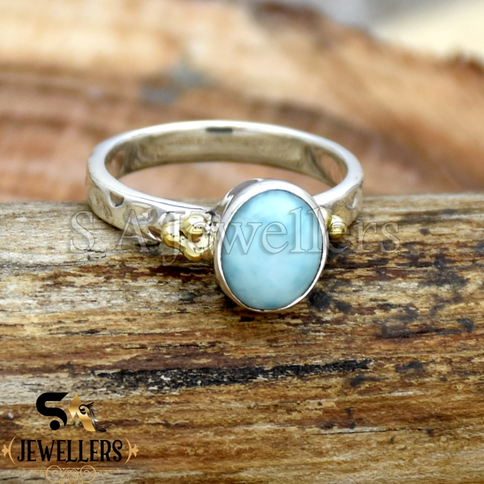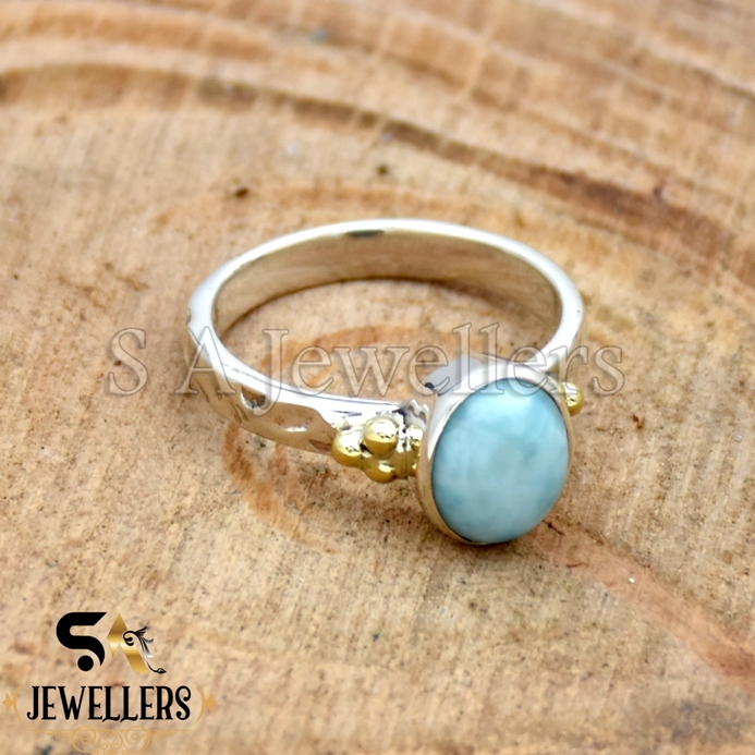 Larimar Handmade 925 Sterling Silver Ring, Gift For Her, Two Tone Ring