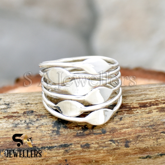 Leaf Silver Wire Ring Silver Wide Wrap Ring, 925 Sterling Silver Ring For Gift