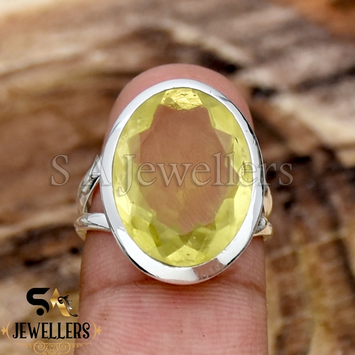 Lemon Topaz Silver Ring, 925 Sterling Silver Ring, Statement Silver Ring