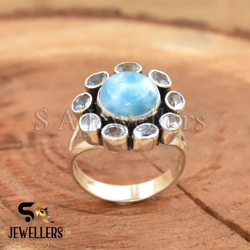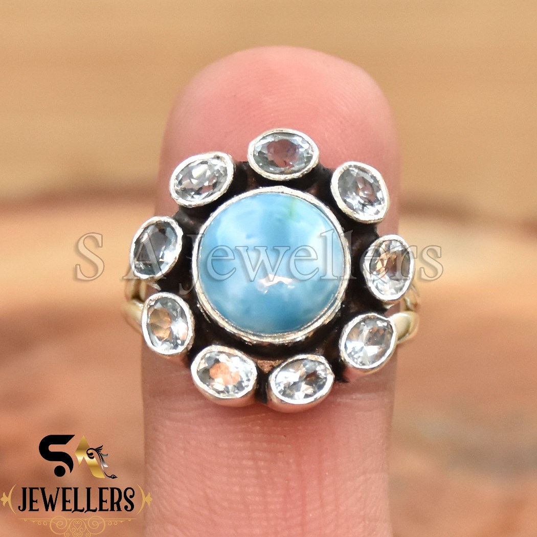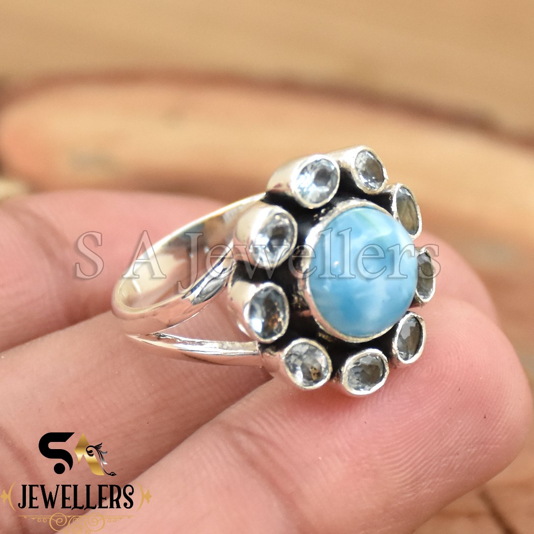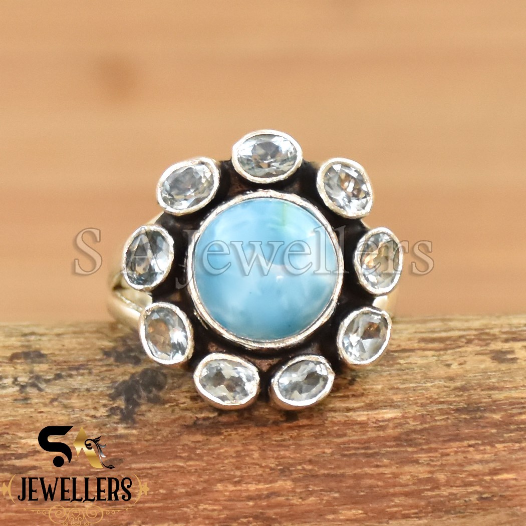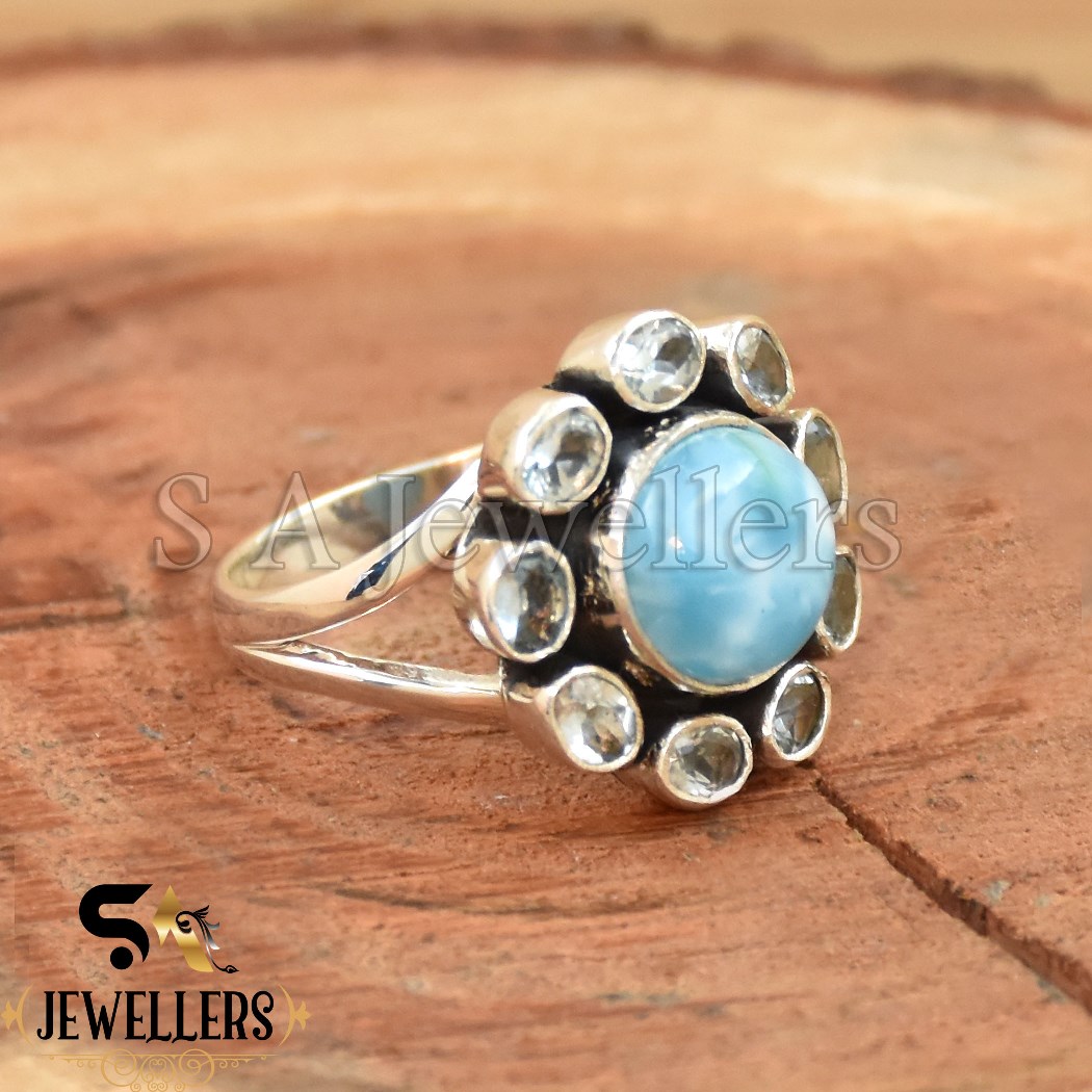 Be the first to review “London Blue Topaz Floral Style Ring, 925 Sterling Silver Ring, Larimar Ring”