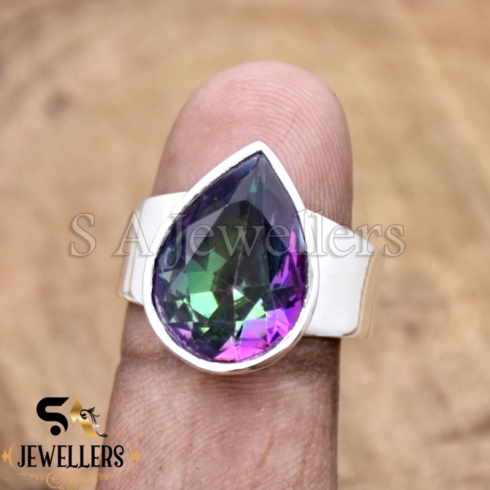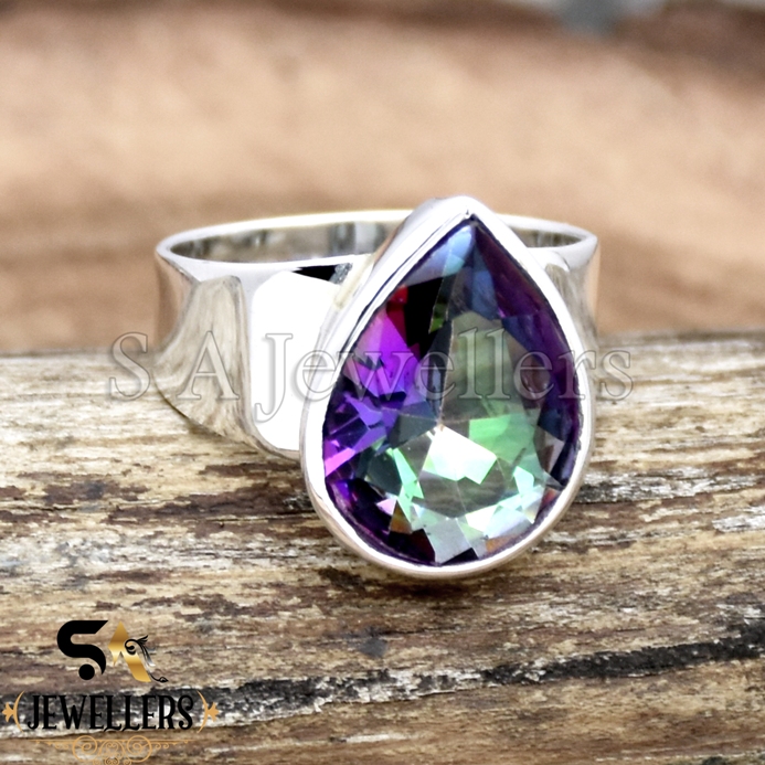 Mystic Topaz Ring, 925 Sterling Silver Ring, Pear Shape Ring, Handmade Jewelry