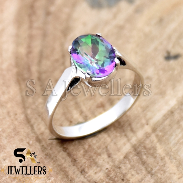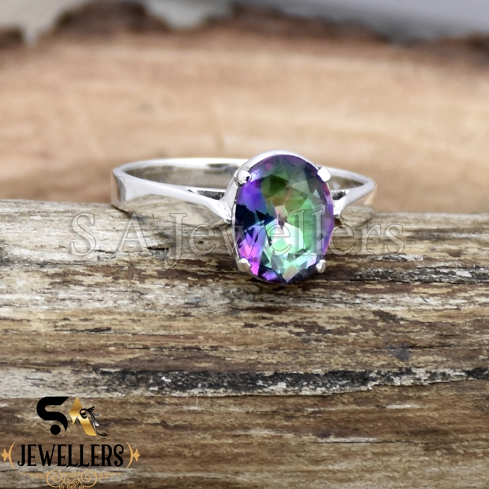 Mystic Topaz Ring, 925 Sterling Silver Ring, Prong Style, Oval Stone Ring, Gift For Her
