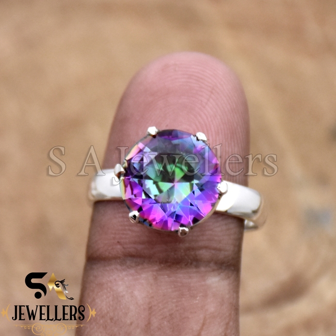 Mystic Topaz Ring, 925 Sterling Silver Ring, Prong Style Ring, Gift For Her