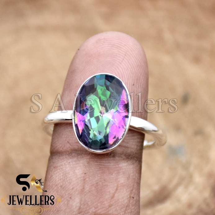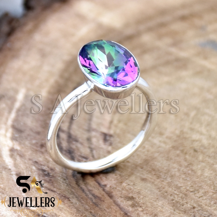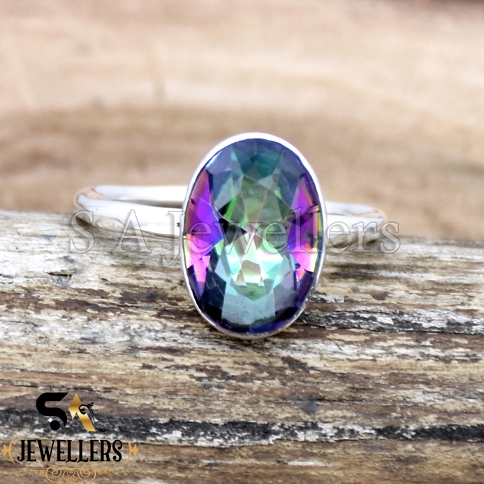 Mystic Topaz Ring, 925 Sterling Silver Ring, Statement Silver Ring