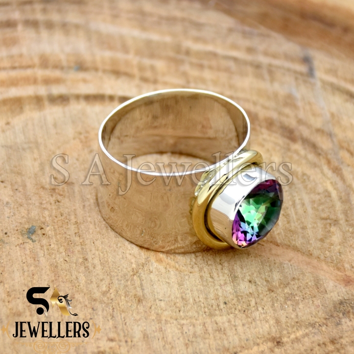 Be the first to review “Mystic Topaz Ring, 925 Sterling Silver, Wide Hammered Band, Two Tone Ring”