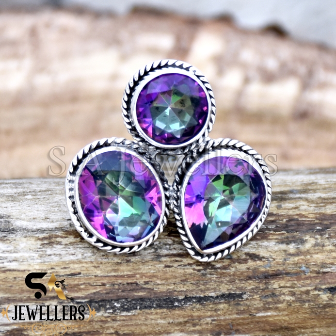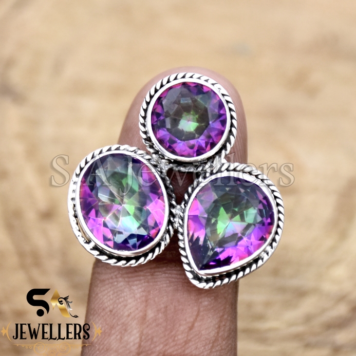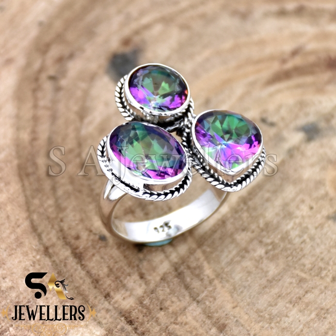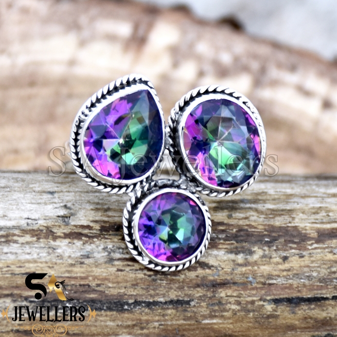 Mystic Topaz Ring, Three Gemstone Ring, 925 Sterling Silver Ring, Gift For Her