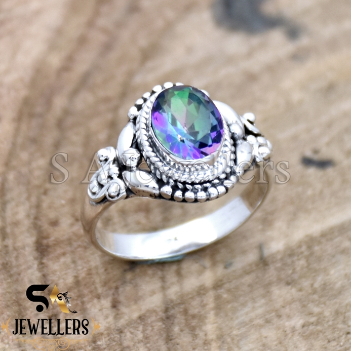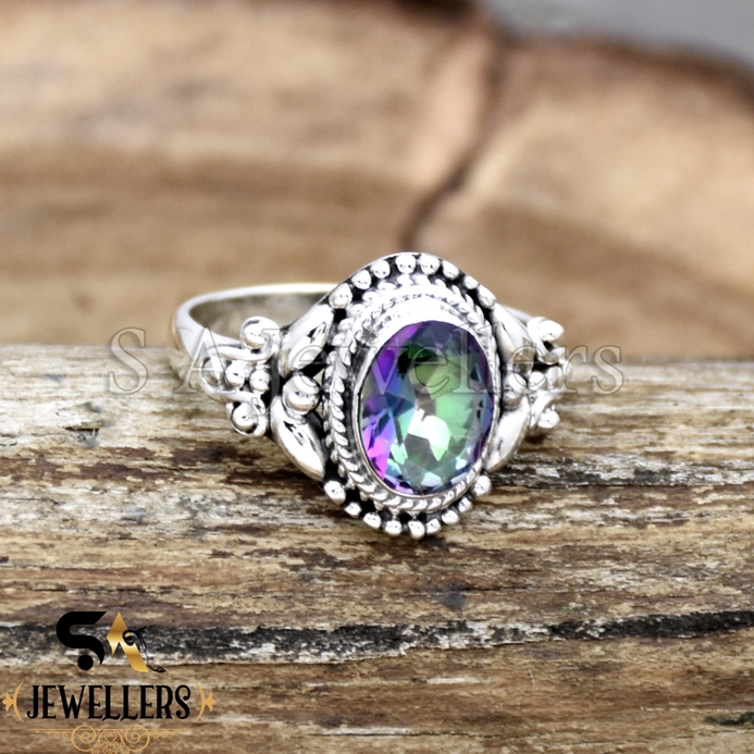 Be the first to review “Mystic Topaz Silver Ring, Statement Ring, 925 Sterling Silver, Rainbow Topaz”