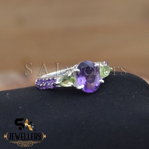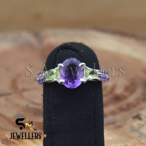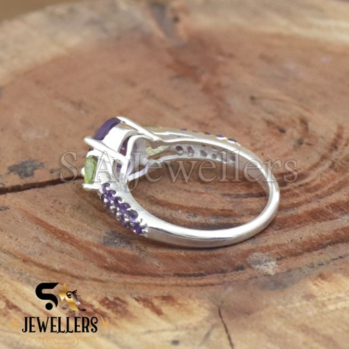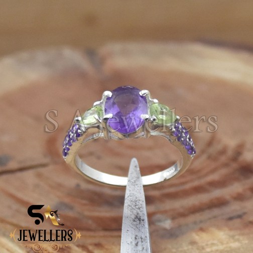 Natural Amethyst & Peridot Ring, 925 Sterling Silver Ring For Women’s