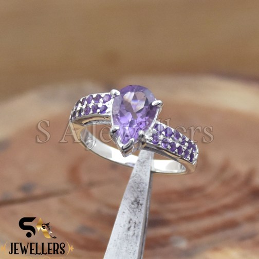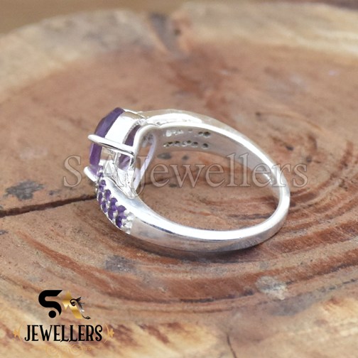 Natural Amethyst Prong Style Ring, 925 Sterling Silver Ring For Women’s