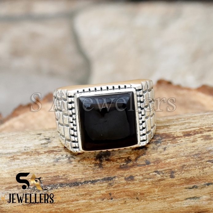 Natural Black Onyx Ring, Men’s Ring, 925 Sterling Silver Ring, Gift For Him
