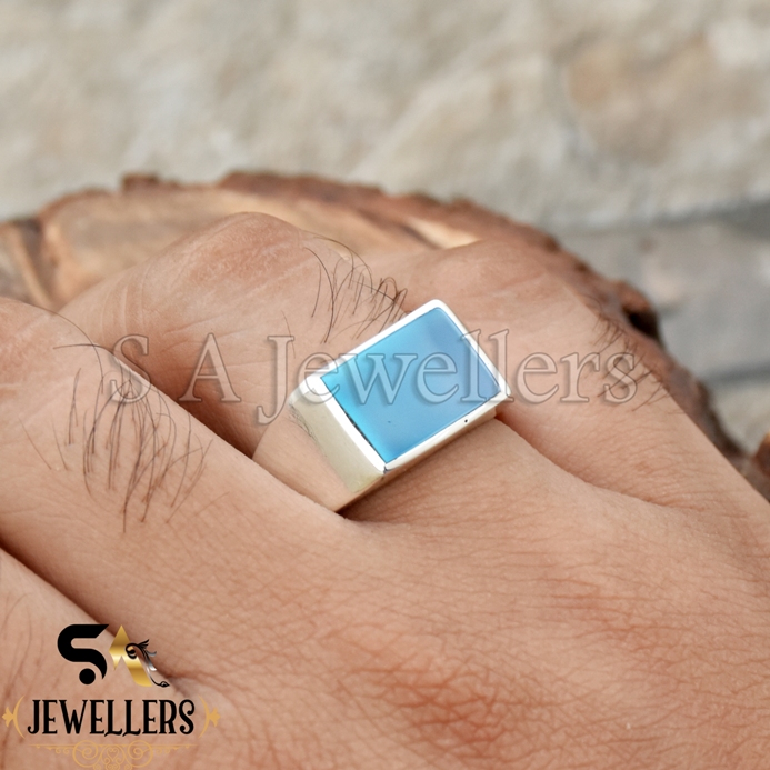 Be the first to review “Natural Blue Chalcedony Ring, 925 Sterling Silver Ring, Men’s Statement Ring, Gift For Him”