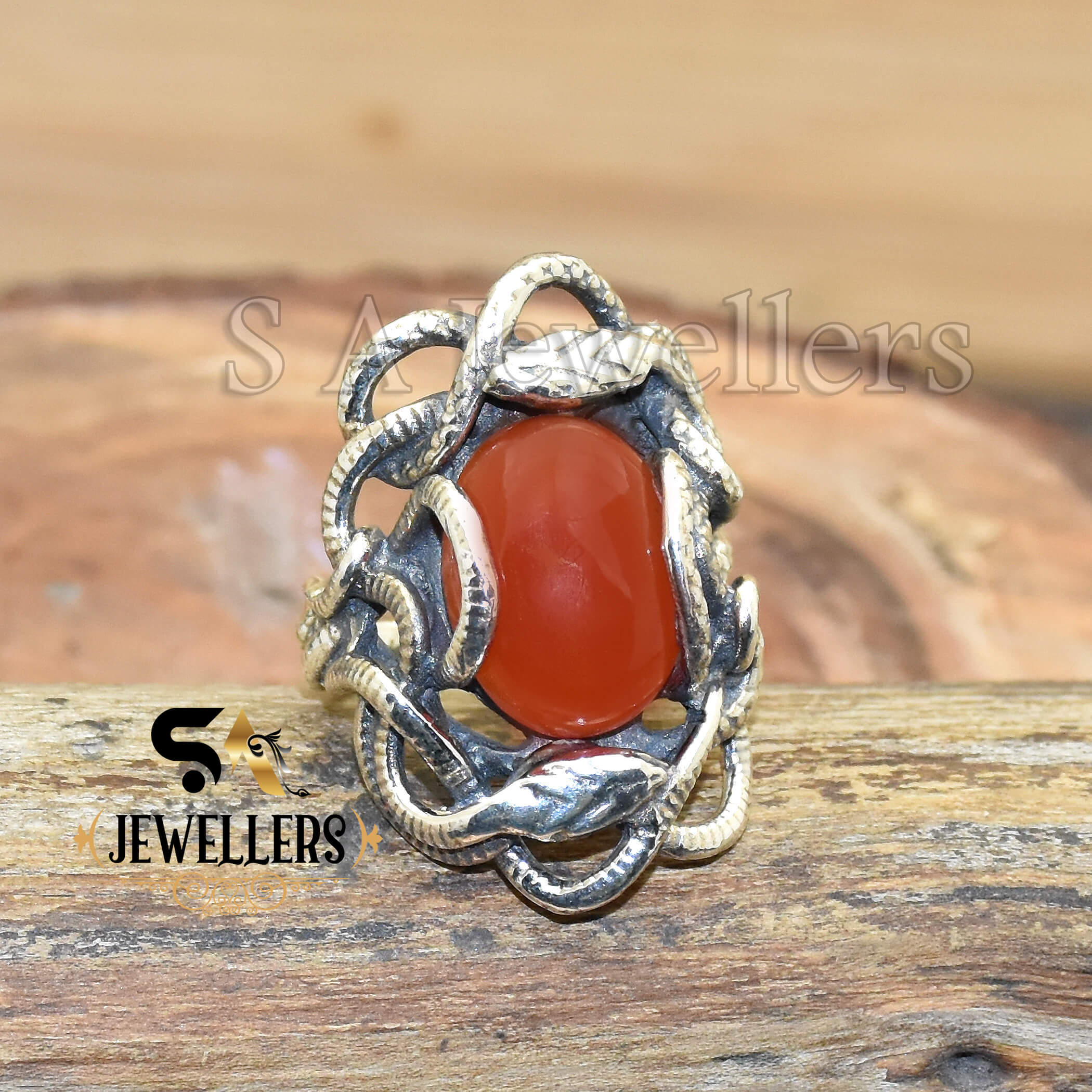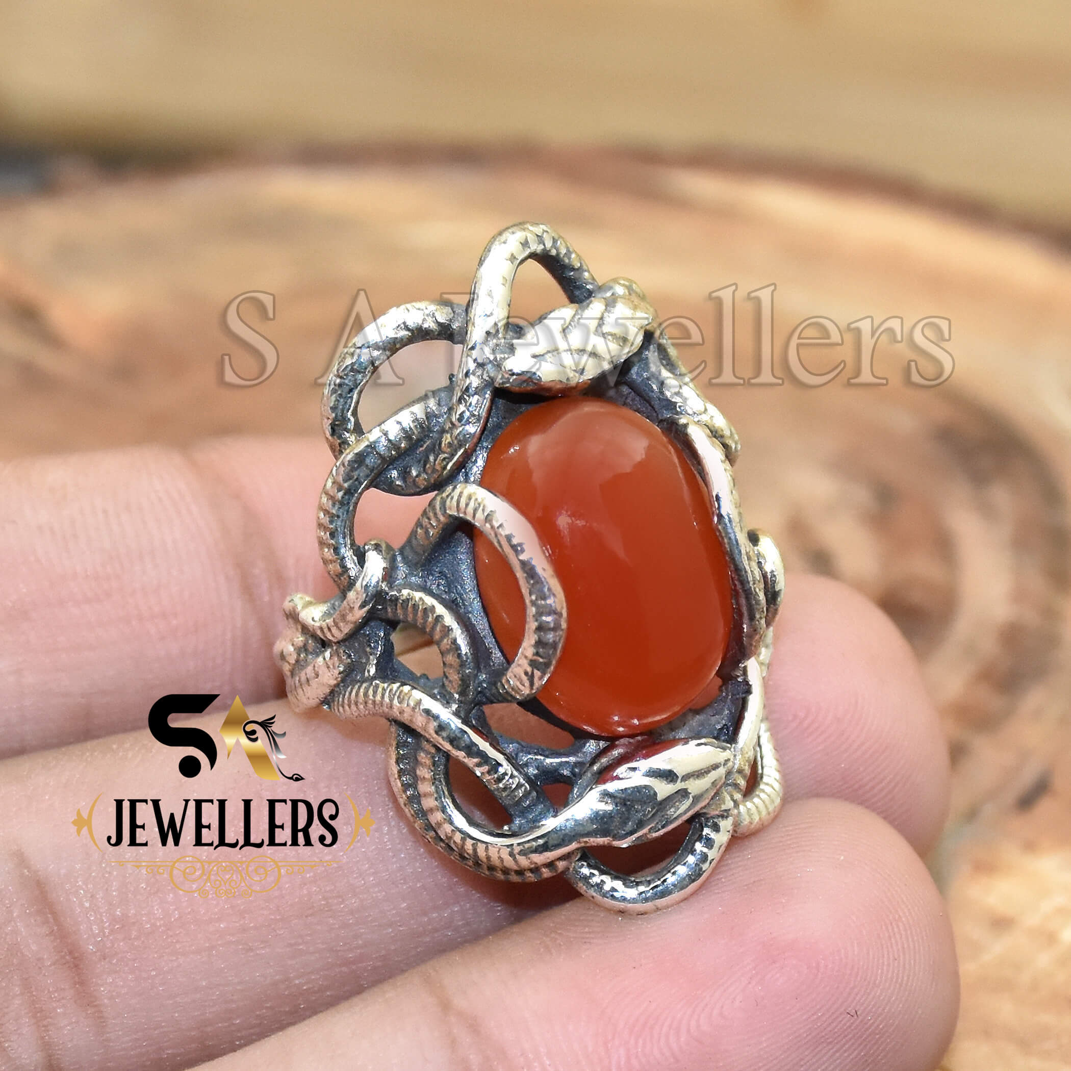 Natural Carnelian Ring, 925 Silver Ring, Snake Ring, Thumb Ring, Handmade Gemstone Ring, Carnelian Gemstone Ring, Snake jewelry