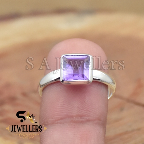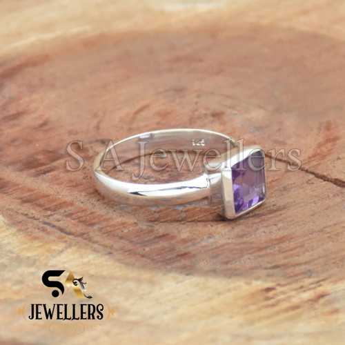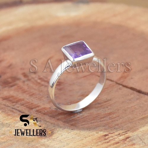 Natural Faceted Amethyst Ring, Cushion Stone Ring, 925 Sterling Silver