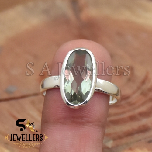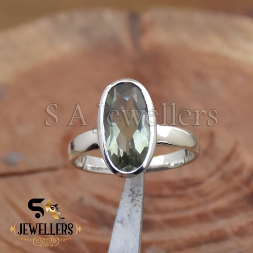 Natural Green Amethyst Ring, Top Quality Cut Stone Ring, 925 Sterling Silver