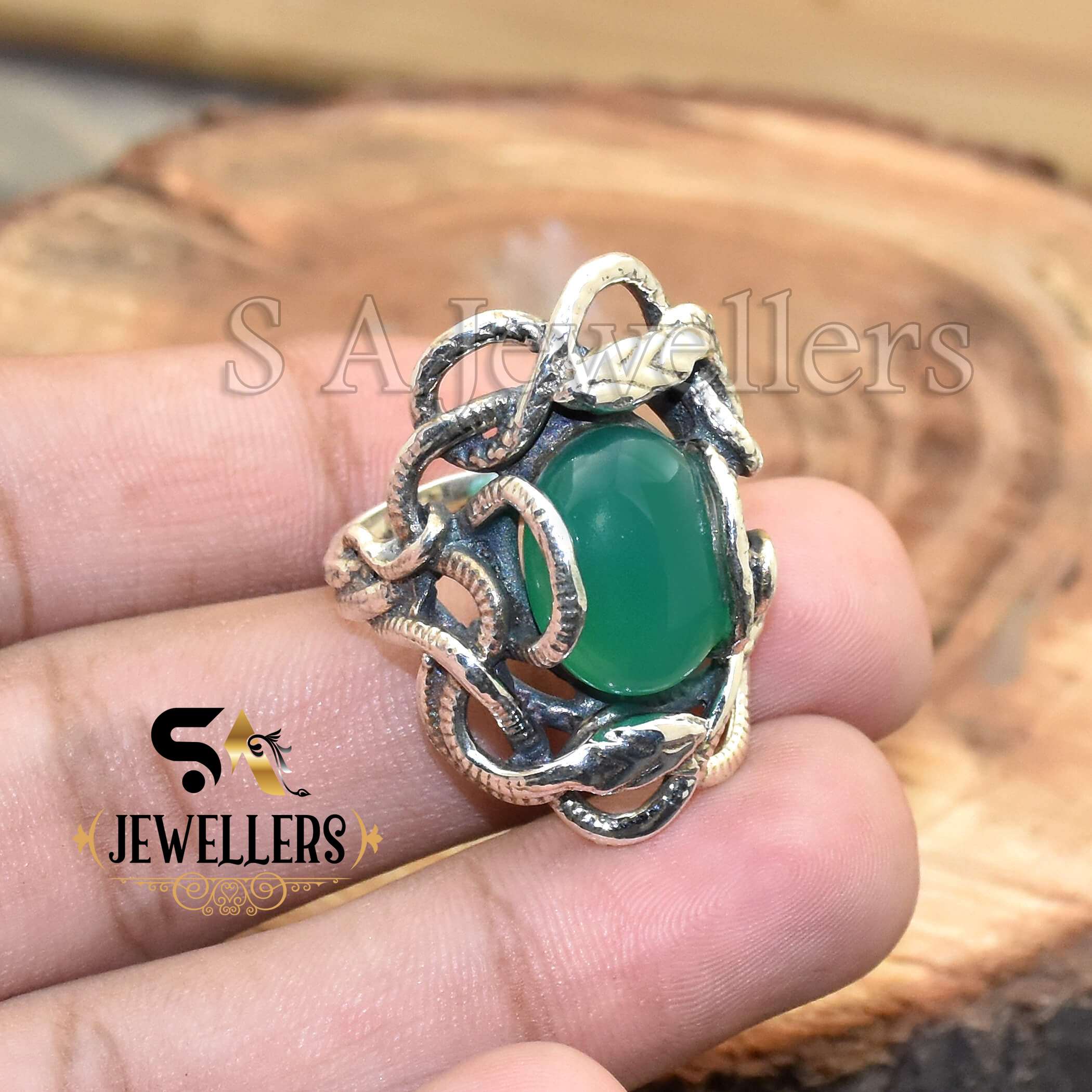 Natural Green Onyx Ring, 925 Silver Ring, Snake Ring, Thumb Ring, Handmade Gemstone Ring, Onyx Gemstone Ring, Snake jewelry
