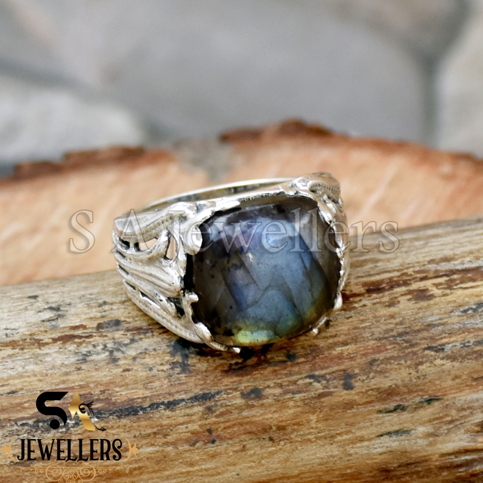 Natural Labradorite Ring, 925 Sterling Silver Ring, Prong Ring, Gift For Her