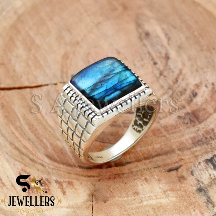 Natural Labradorite Ring, Men’s Ring, 925 Sterling Silver Ring, Statement Ring