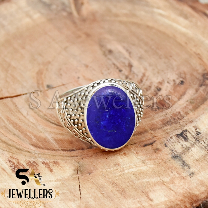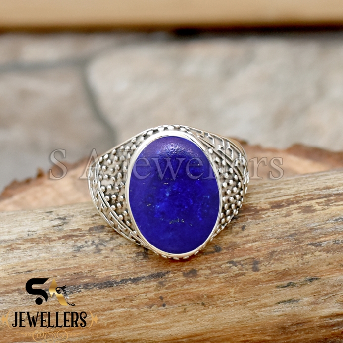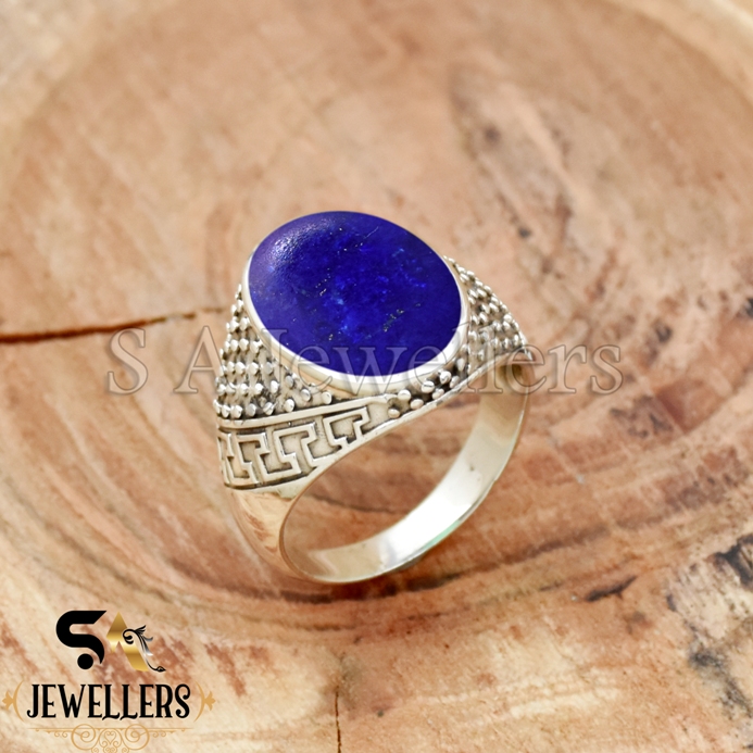 Natural Lapis Lazuli Ring, Men’s Statement Ring, 925 Sterling Silver Ring