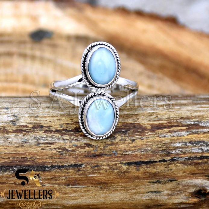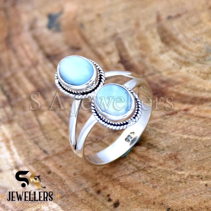 Natural Larimar Ring, 925 Sterling Silver Ring, Gemstone Ring, Women’s Jewelry