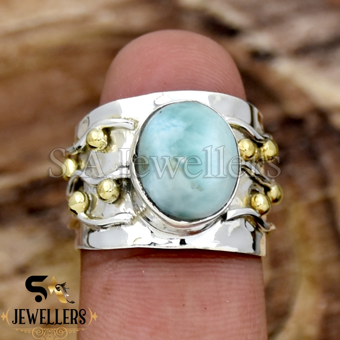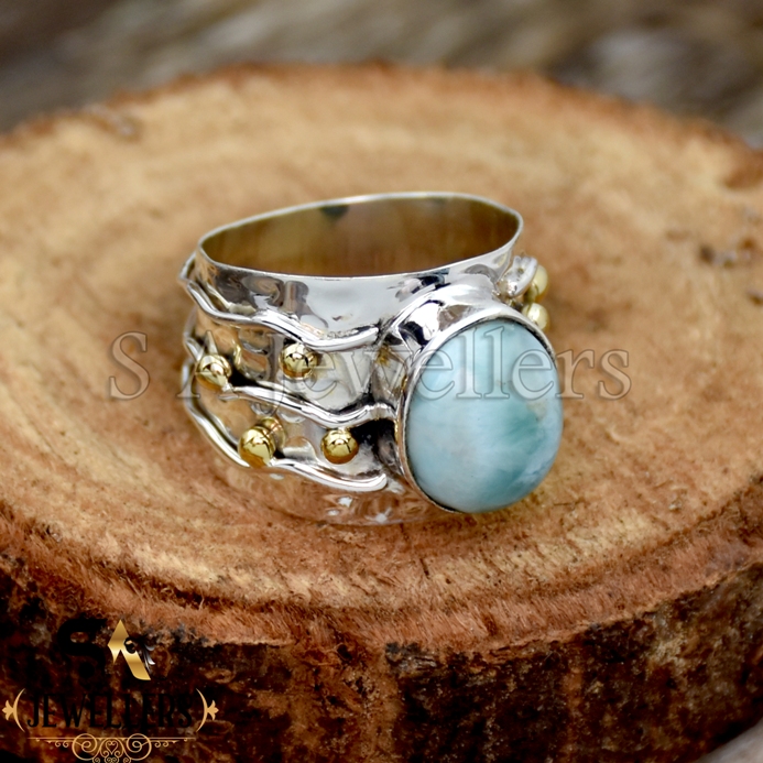 Be the first to review “Natural Larimar Silver Ring, Brass Ball Ring, 925 Sterling Silver Ring,”