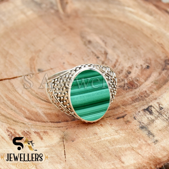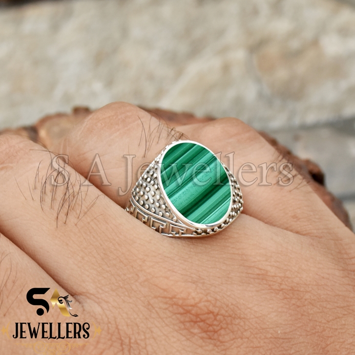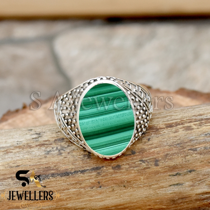 Natural Malachite Ring, Men’s Statement Ring, 925 Sterling Silver Ring
