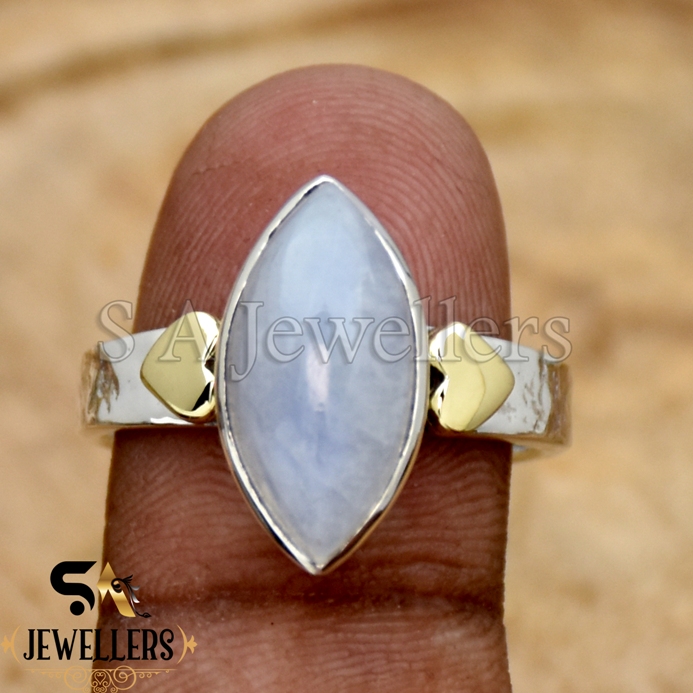 Be the first to review “Natural Moonstone Ring, Hammered Band, 925 Sterling Silver, Two Tone Ring”