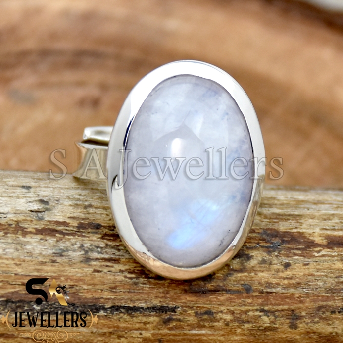 Natural Moonstone Silver Ring, Adjustable Ring, 925 Sterling Silver, Handmade Ring