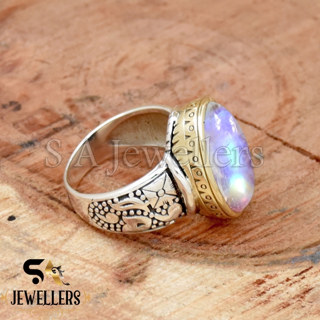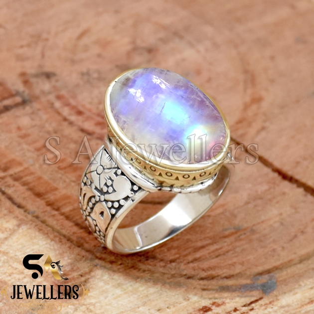 Be the first to review “Natural Rainbow Moonstone Ring, 925 Sterling Silver Ring, Tow Tone Ring”