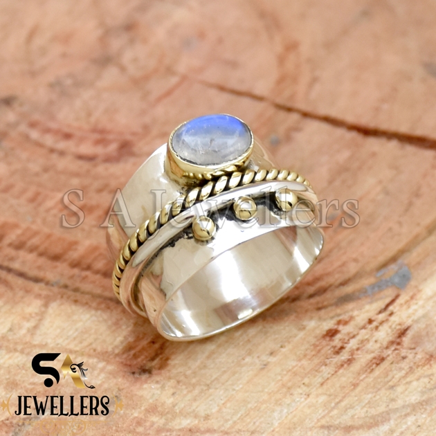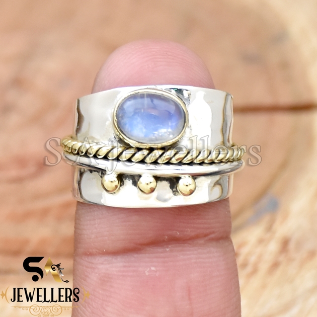 Be the first to review “Rainbow Moonstone Ring, 925 Sterling Silver Ring, Twisted Band, Two Tone Ring”