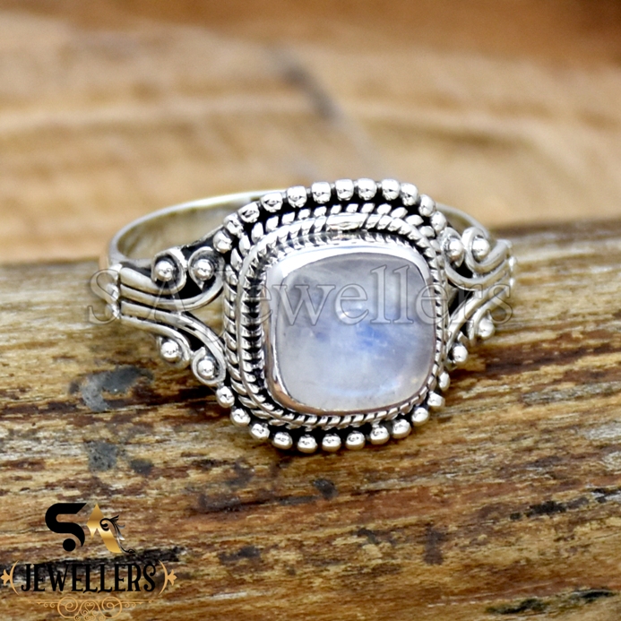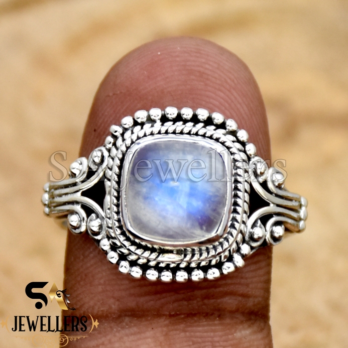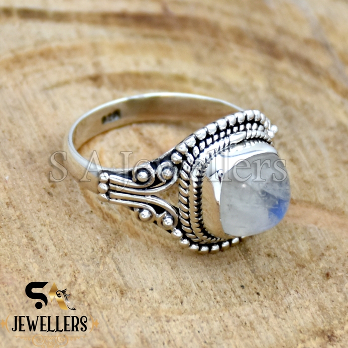 Natural Rainbow Moonstone Ring, Statement Ring, 925 Sterling Silver, Gift For Her
