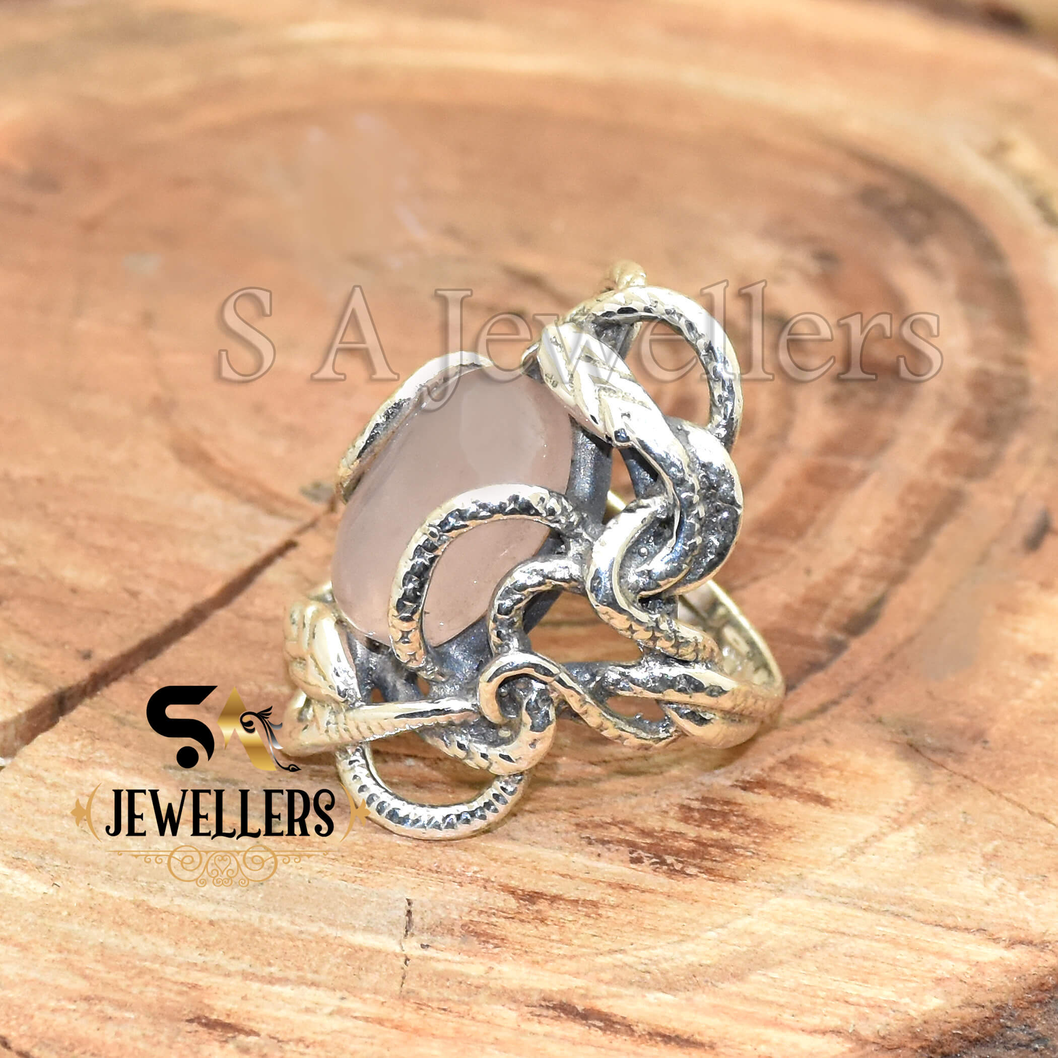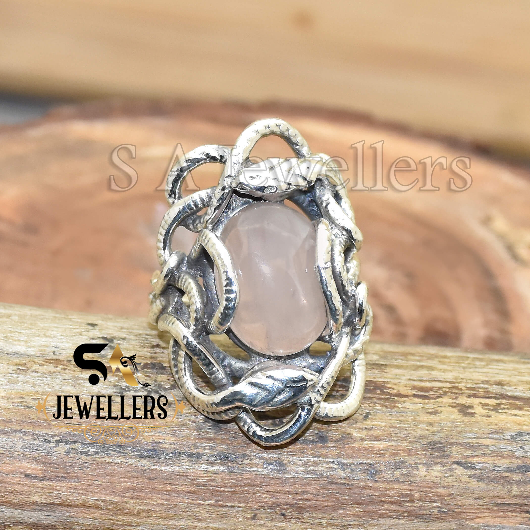 Natural Rose Quartz Ring, 925 Silver Ring, Snake Ring, Thumb Ring, Handmade Gemstone Ring, Pink Quartz Gemstone Ring, Snake jewelry