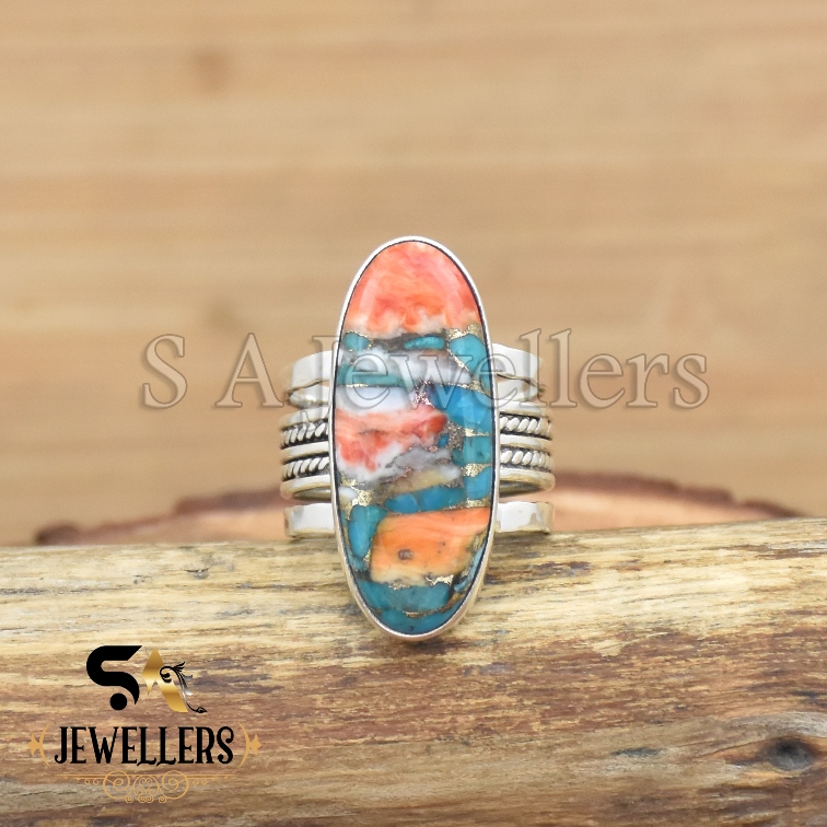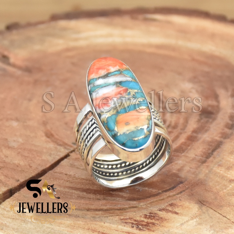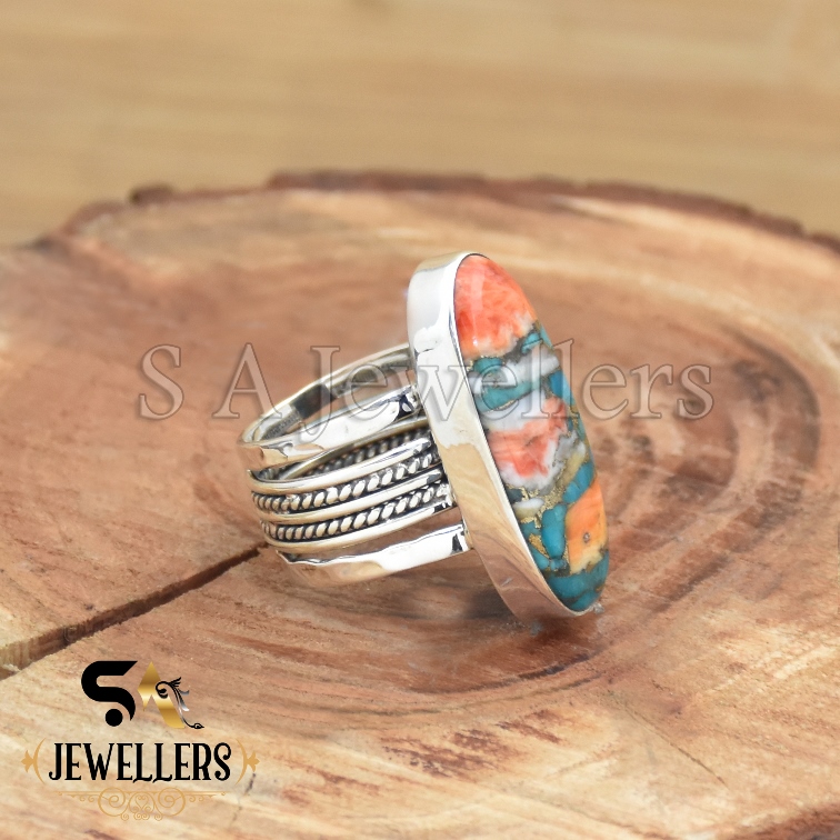 Orange Spiny Oyster Turquoise Ring, 925 Sterling Silver Ring, Designer Ring, Birthday Jewelry