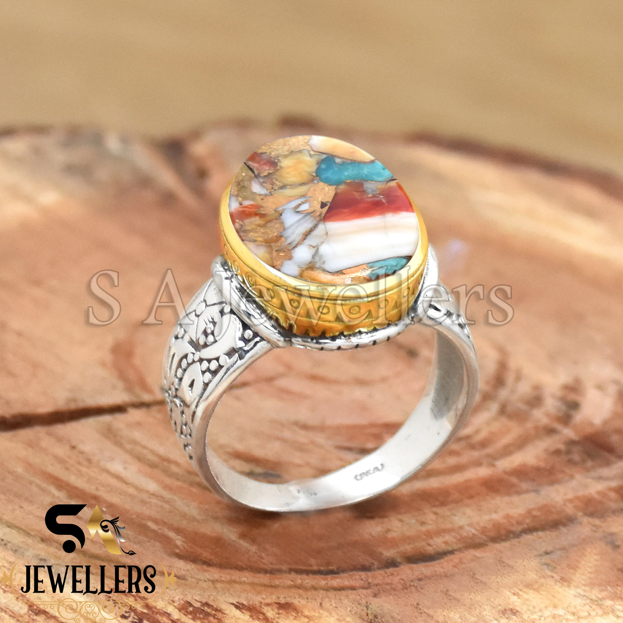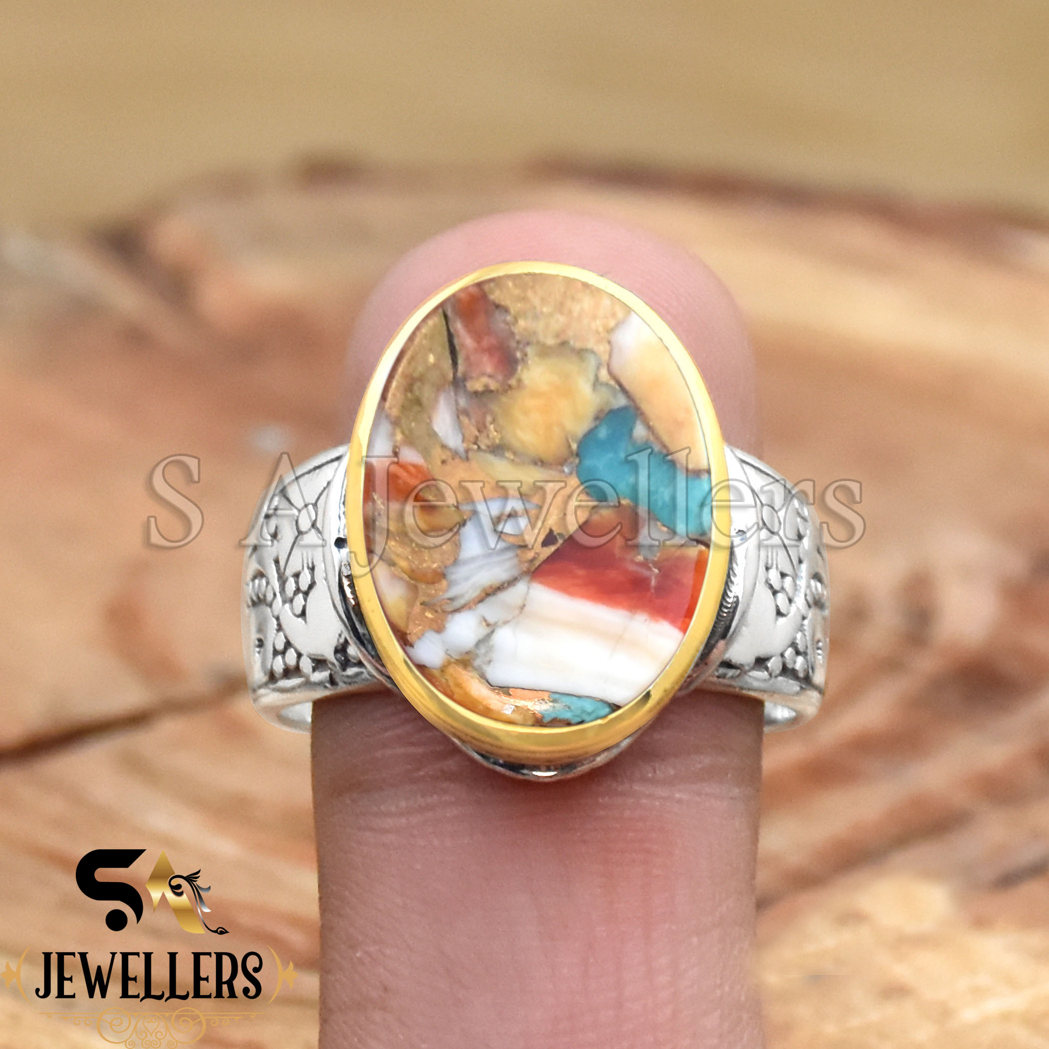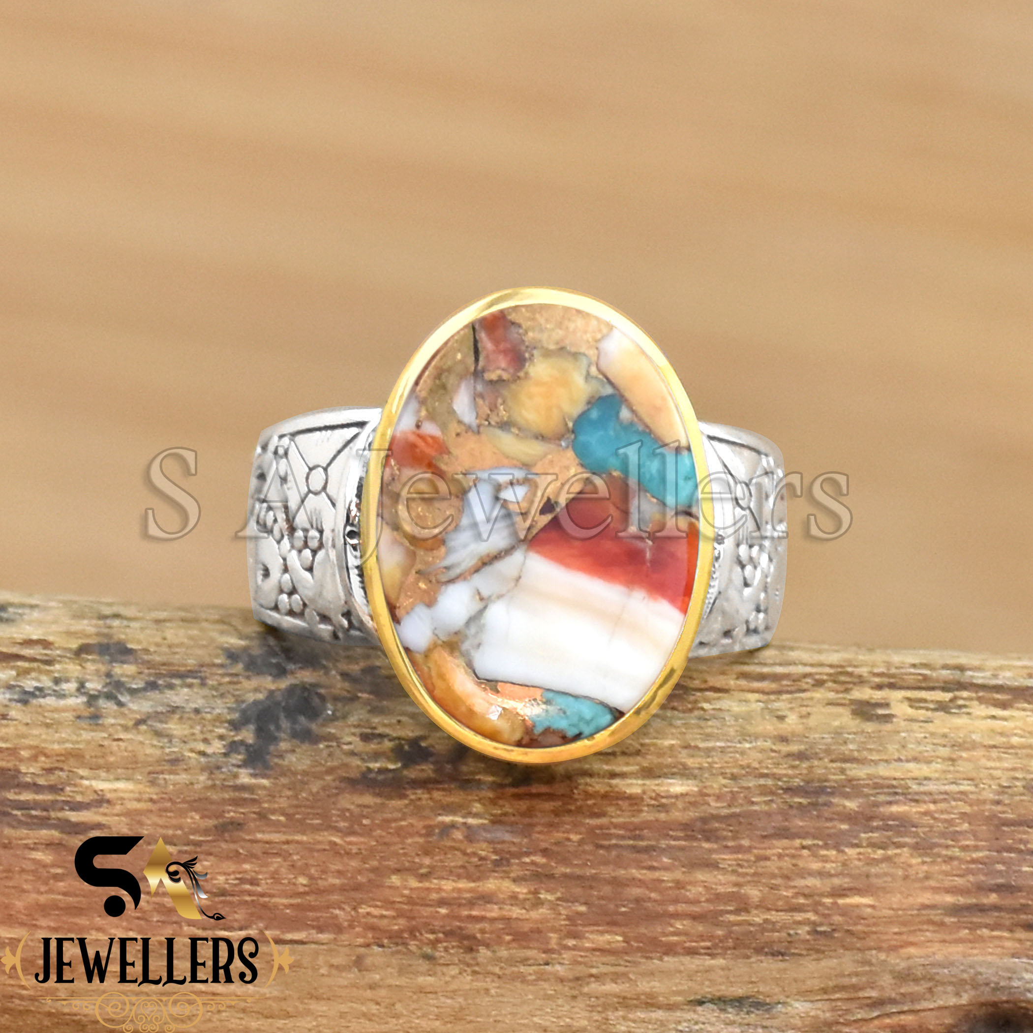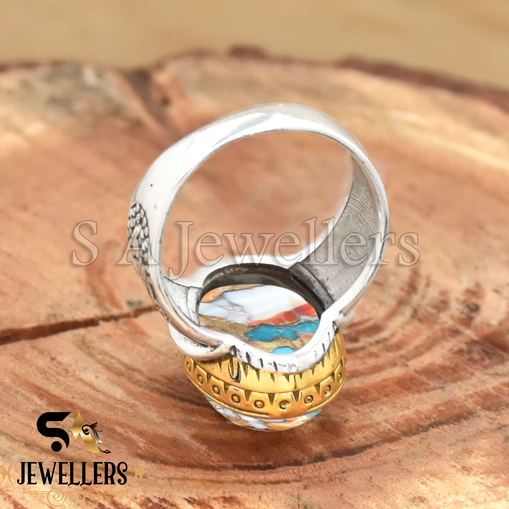 Oyster Copper Turquoise Ring, 925 Sterling Silver Ring, Flat Gemstone Ring