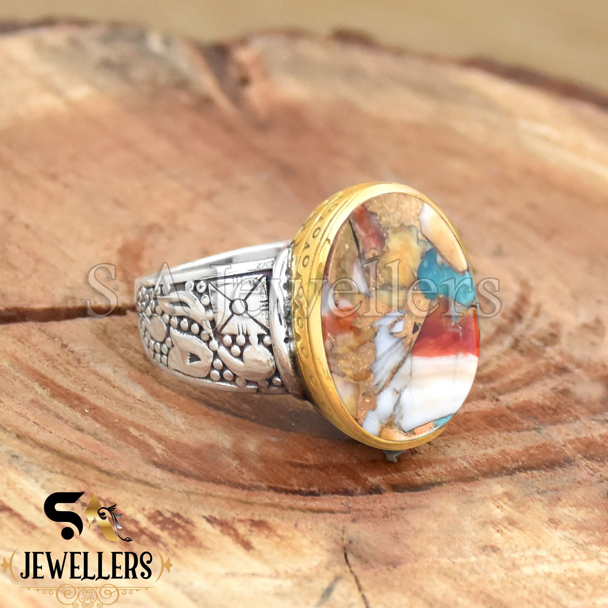 Be the first to review “Oyster Copper Turquoise Ring, 925 Sterling Silver Ring, Flat Gemstone Ring”