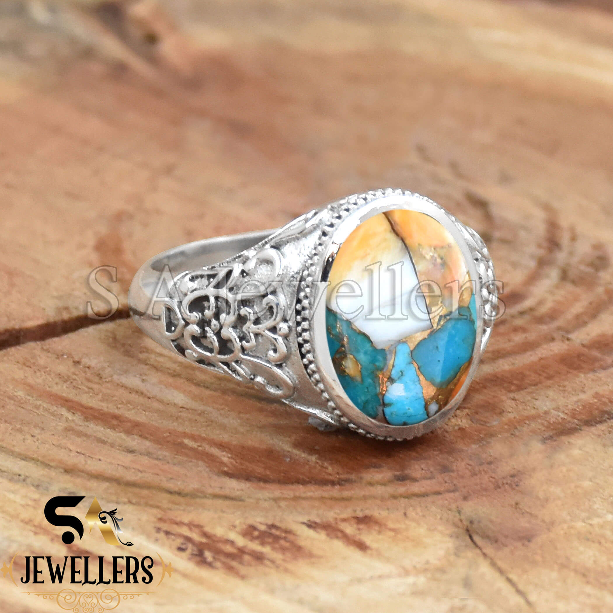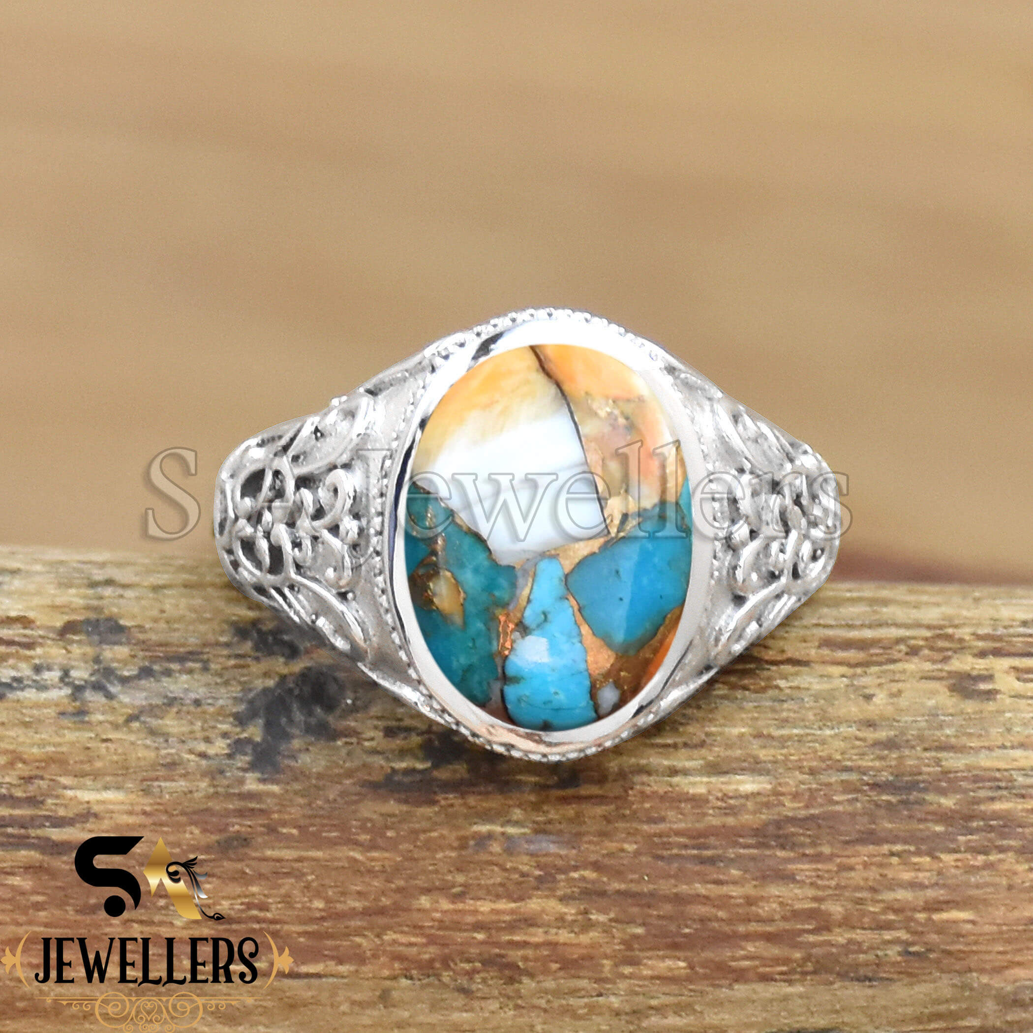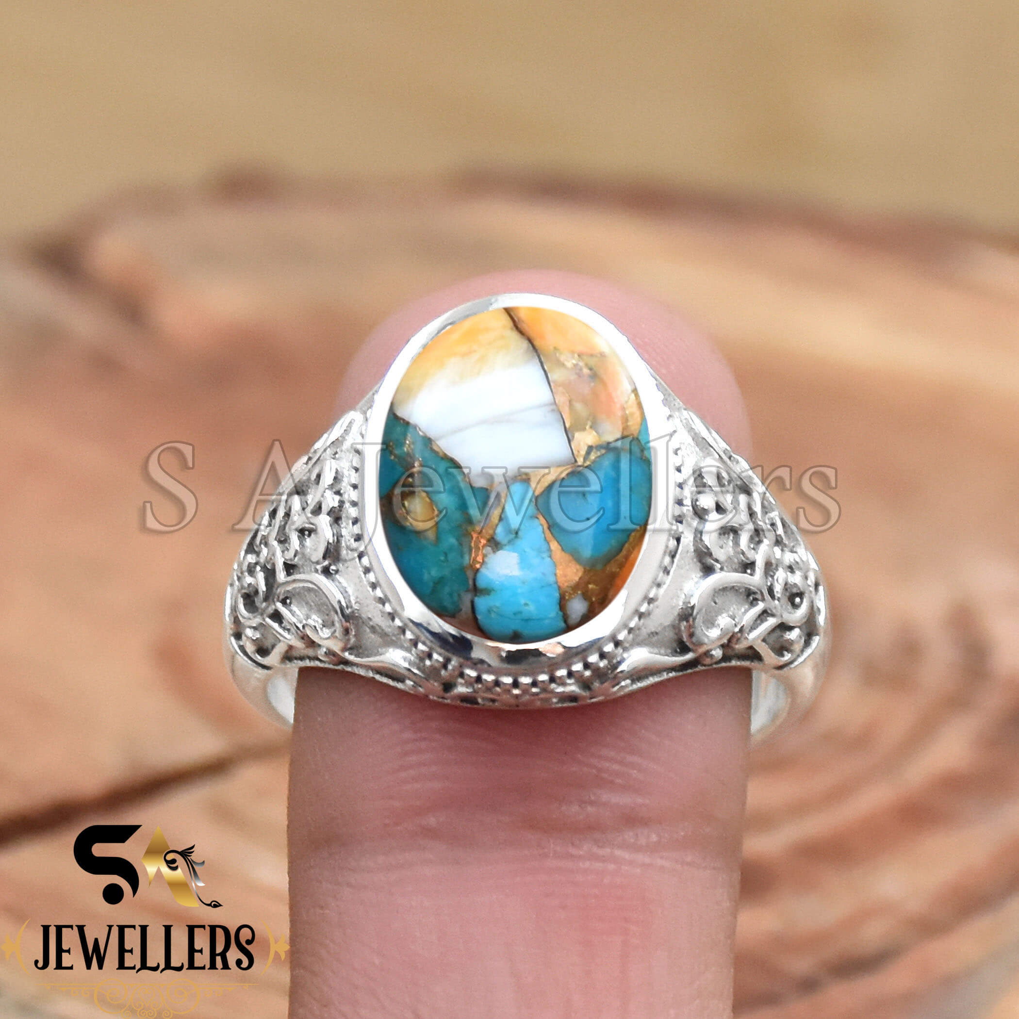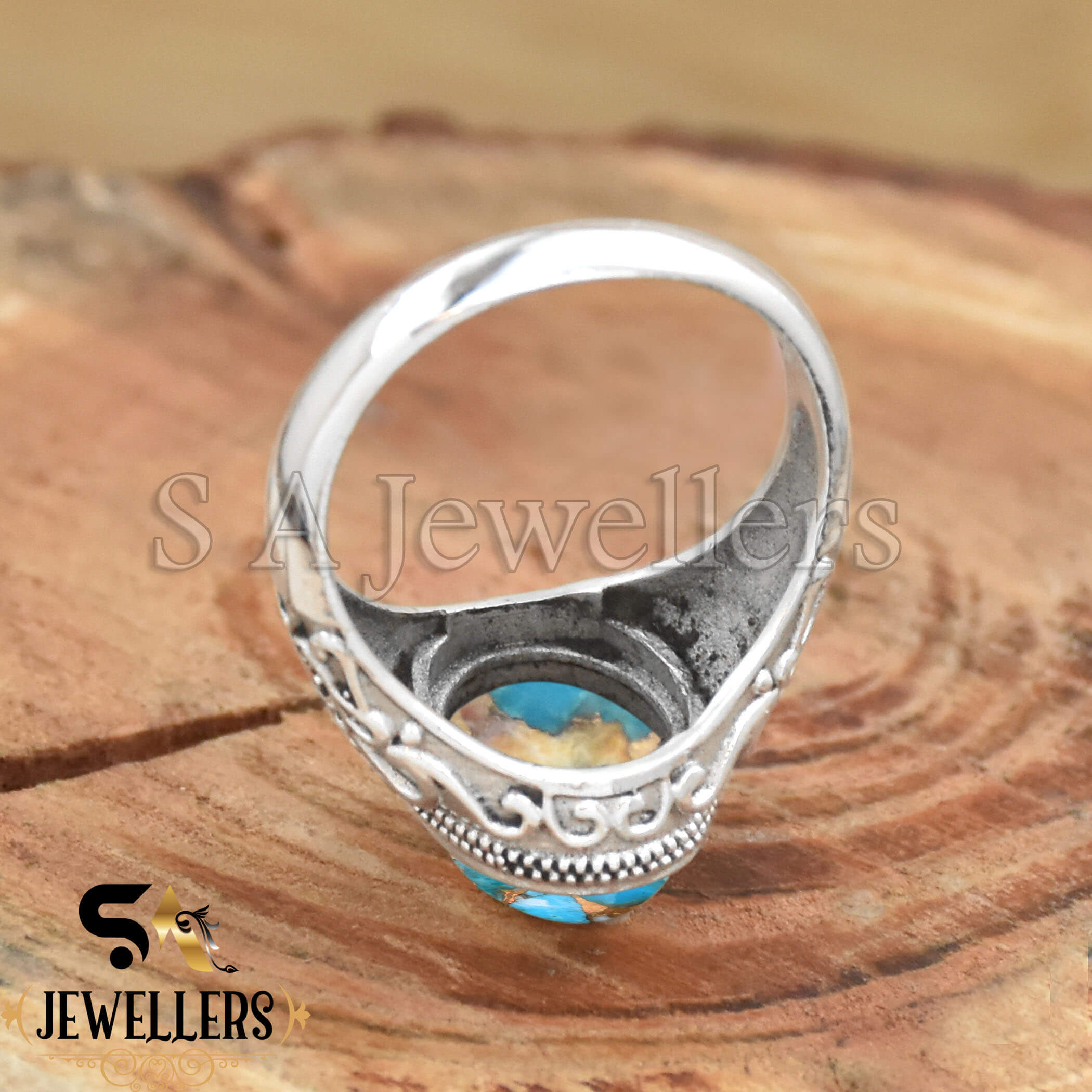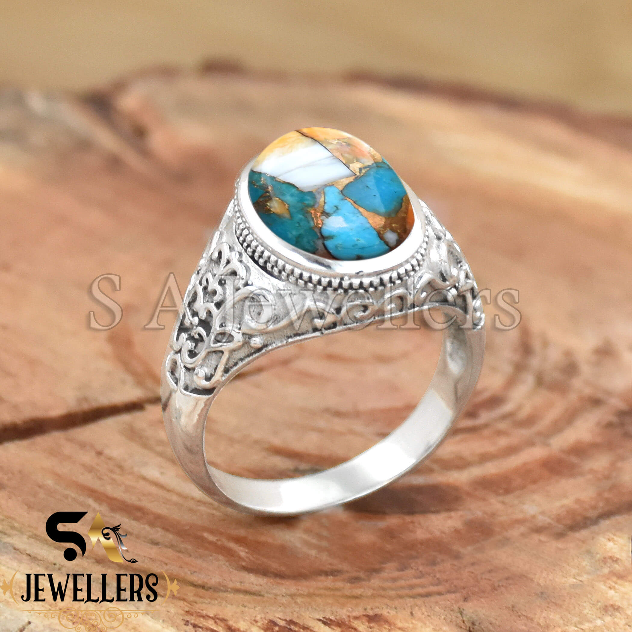 Oyster Copper Turquoise Ring, 925 Sterling Silver Ring, Silver Jewelry