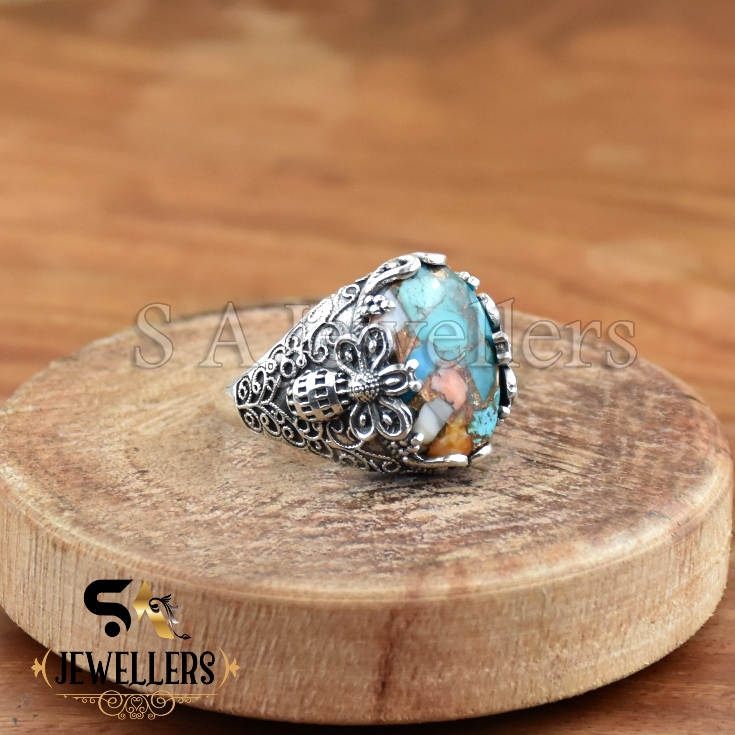 Be the first to review “Oyster Turquoise Ring, Men’s Butterfly Ring, 925 Sterling Silver Ring,”