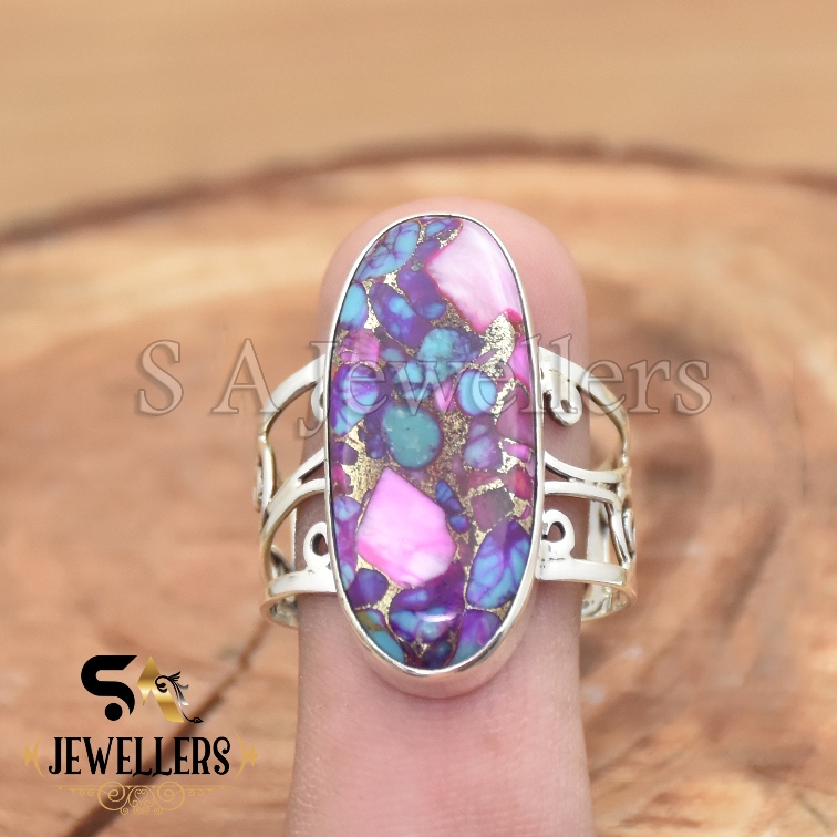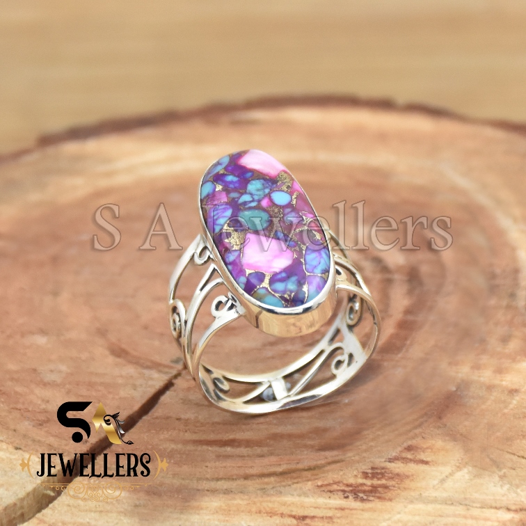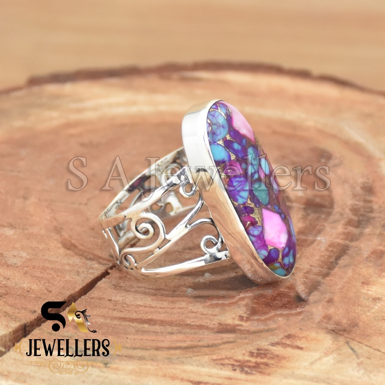 Pink Oyster Turquoise Ring, 925 Sterling Silver Ring, Promise Ring