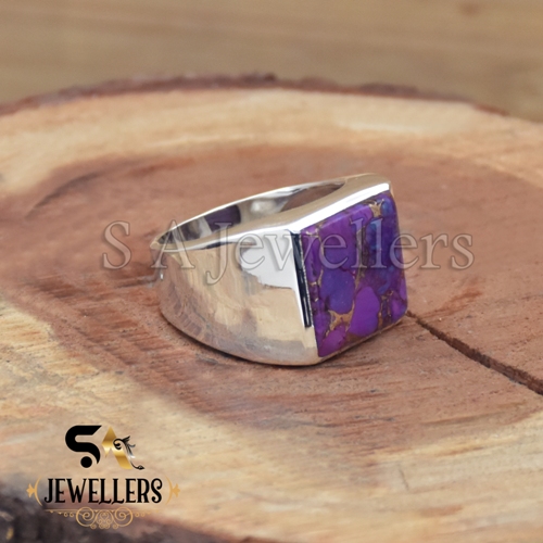 Purple Copper Turquoise Ring, 925 Sterling Silver, Men’s Ring